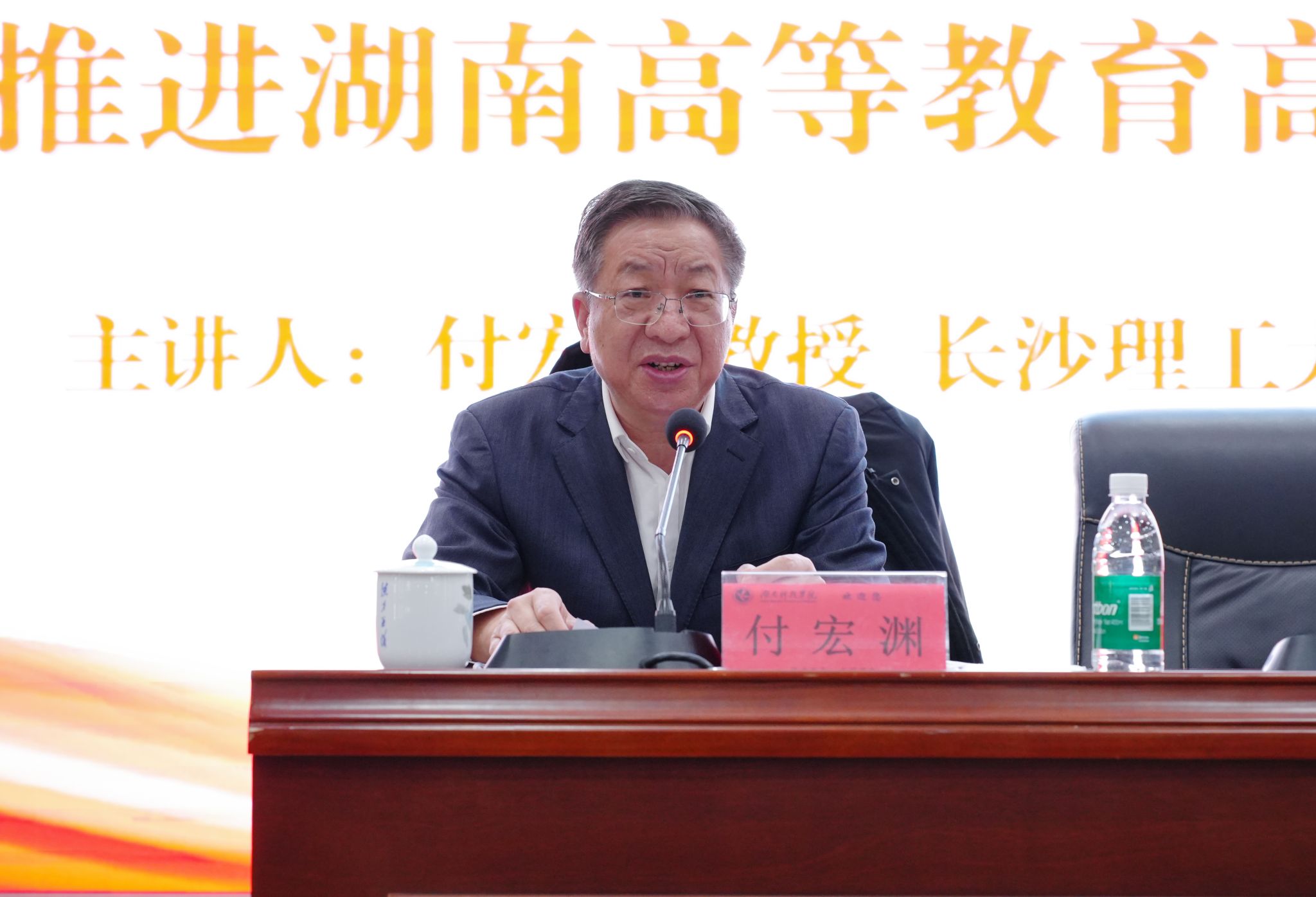 付宏渊深入解读了全会作出的重大战略部署及其对高等教育发展的根本要求,并从深刻认识把握我国高等教育面临的形势、地方区域性大学发展的思考、大学规划应高度关注的重大问题等三个方面进行系统阐述。聚焦地方区域性大学在现代化发展进程中的使命担当与发展路径,他认为应进一步把准办学定位、构建更具竞争力的办学新格局、坚定不移打造一流学科、探索高素质创新型人才培养新范式、推动高校治理体系和治理能力现代化。报告政治站位高、战略视野宽、问题导向强,既有理论深度,又紧密结合湖南高等教育实际,对学校广大干部师生深化理解全会精神、凝聚改革发展共识具有重要的指导意义。