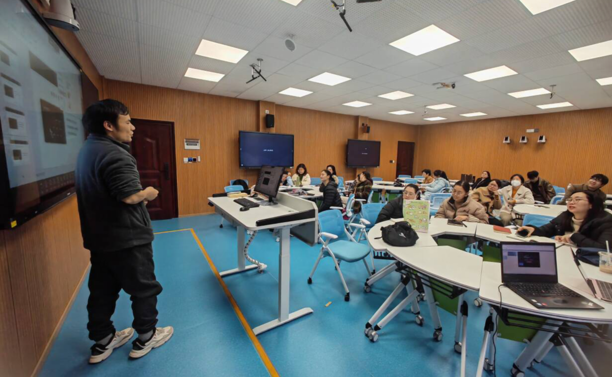 会上,企业培训师以研讨、互动教学方式方法、精品课程录制、数字化教学资源库构建等内容为切入点,从一线教师教学中的实际问题出发,探索利用数字化手段助力课堂转型。为我校教师开展智慧教学技能及现代教育技术设备使用展开了一系列的培训和探讨。