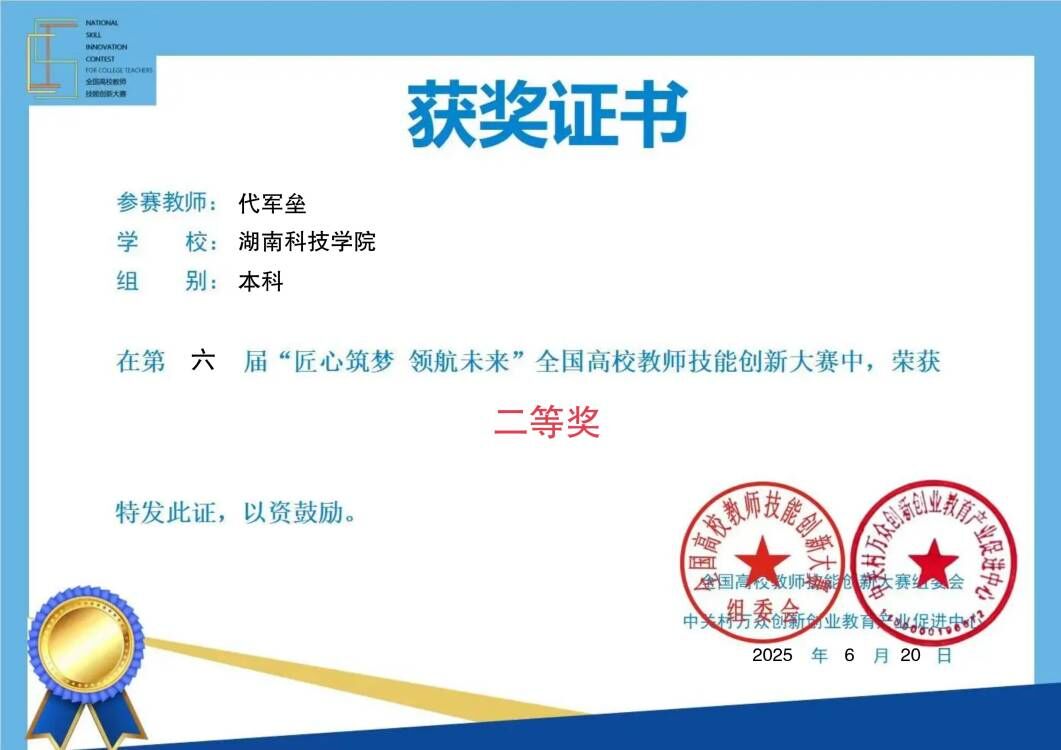 我校教师荣获第六届“匠心筑梦 领航未来”全国高校教师技能创新大赛二等奖(图)