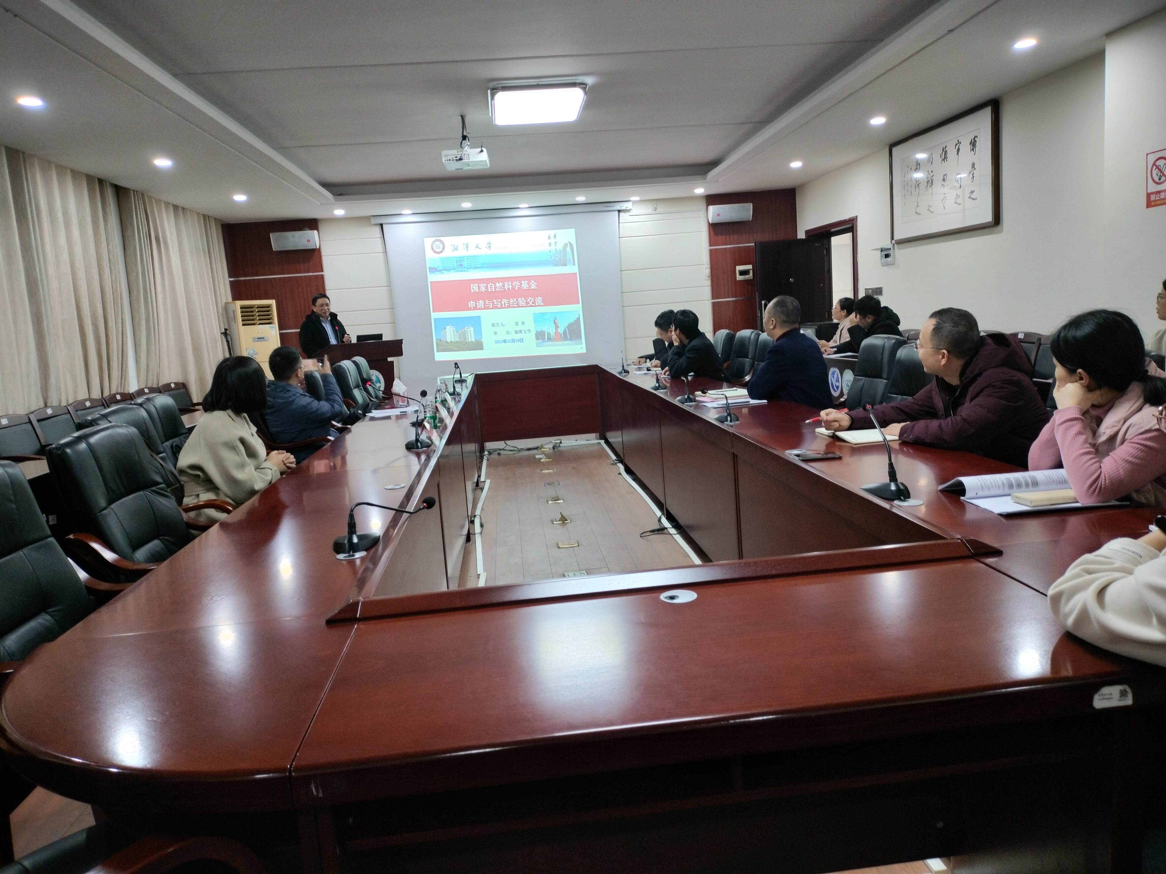 本网讯 11月16日-17日,湘潭大学裴勇教授、南京大学王乐勇教授、湖南农业大学伍树松教授、潘浪教授、叶能辉教授、吴德志教授、湘潭大学汪璞和马忠云副教授等有成功申报和主持多项国家自然科学基金面上、青年项目的专家学者通过线上或线下的方式受邀为我校教师做国家自然科学基金申请经验分享与交流报告。报告结束后,专家们对我校明年拟申报基金的教师进行一对一、面对面指导基金写作。会后,参加报告和写作指导会的教师均表示,这种基金申报辅导报告和写作指导针对性强、效果好,对申请国家自然科学基金大有裨益。