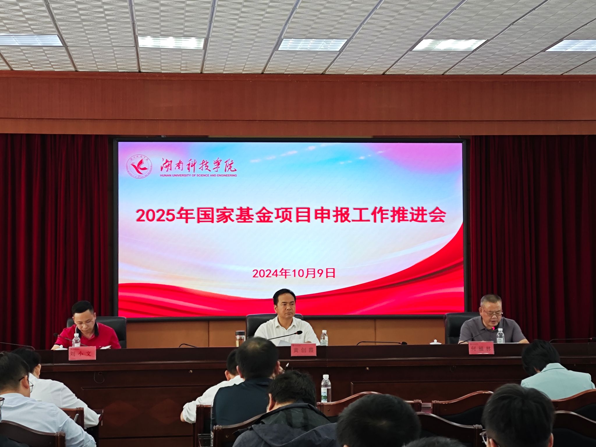 会上,化学与生物工程学院、土木与环境工程学院、文法学院、经济管理学院4个学院院长分别汇报了2025年国家科学基金项目准备情况,刘春梅、廖旭、张能泉、蔡保忠等4位博士代表全校科研骨干分享了申报国家基金项目的心得和经验。