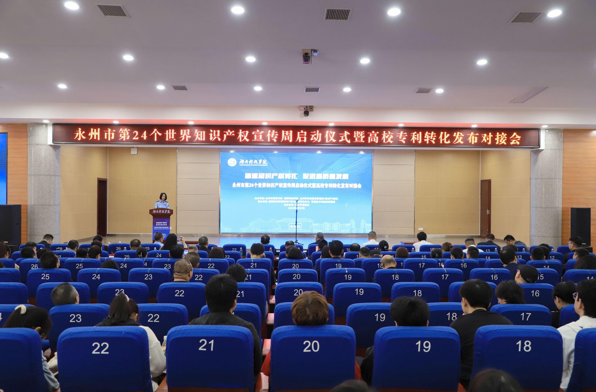 2024年4月,与永州市市场监督管理局联合开展永州市知识产权宣传周启动仪式暨高校专利转化发布对接会。
