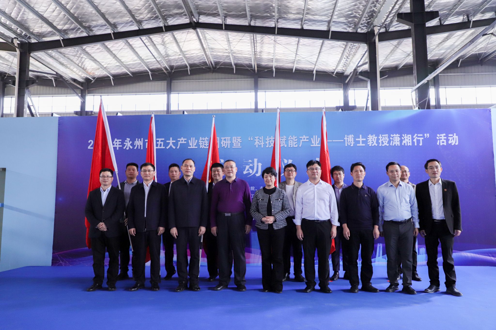 2023年10月,学校联合永州市科技局组织开展永州市五大产业链调研暨“科技赋能产业——博士教授潇湘行”活动,深入全市电子信息产业、装备制造产业、农林产品加工产业、生物医药产业、锂资源产业等五大产业链企业进行专题调研,为市委市政府决策提供重要依据和参考,有效助推全市产业链高质量发展。