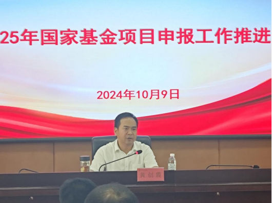为进一步加强有组织科研,统筹推进2025年国家基金项目申报工作,10月9日下午,学校组织召开2025年国基金项目申报推进会,会议分析总结了学校2024年国基金项目的立项情况,研究部署了2025年国家基金的工作安排。党委副书记、校长黄创霞出席并讲话,党委委员、副校长何福林主持会议。各教学学院院长、分管科研工作副院长,学校科研骨干以及科技处全体人员参加会议。