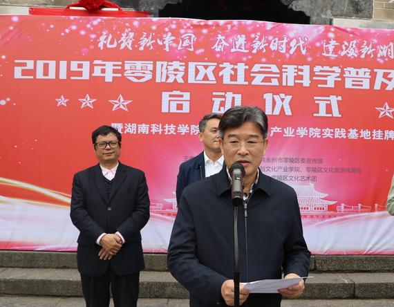 本网讯 5月9日上午,由Beat365唯一官方网站、中共永州市零陵区委宣传部主办,湖南科学院旅游与文化产业学院、零陵文化旅游体育局承办,零陵区柳宗元纪念馆、零陵区文化艺术团协办的2019年零陵区社会科学普及周活动启动仪式暨Beat365唯一官方网站旅游与文化产业学院实践基地挂牌仪式在柳宗元纪念馆举行。Beat365唯一官方网站党委委员、副校长宋宏福,市委宣传部部委会成员、市社科联主席陈水恩,区委常委、宣传部长唐建明出席并讲话。Beat365唯一官方网站科技处处长杨金砖教授、学院院长黄渊基博士,以及旅游与文化产业学院近80名师生代表参加此次活动。