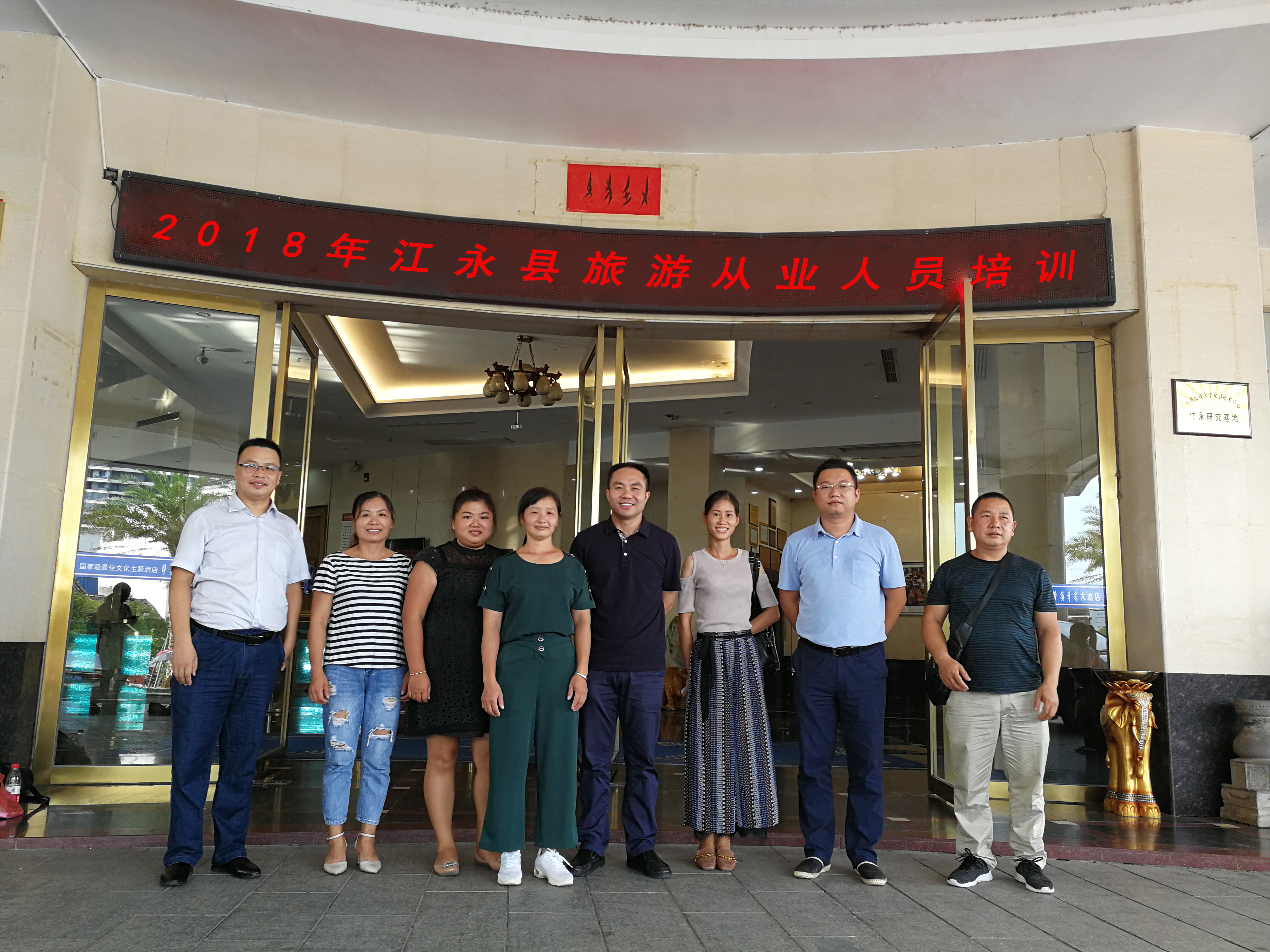 该培训是我院开展校地合作、产学合作的一次有益探索,是江永县与我院全方位战略合作的一部分。学院院长黄渊基、广州大学彭顺生教授、中共湖南省委党校徐芳副教授、中南林业科技大学罗芬副教授、长沙鼎峰智旅信息科技有限公司总裁陈锦先生、女书公司旅游部经理杨丽女士以及学院刘幼平副教授、姚先林副教授、旅游管理系主任李晓红等专家学者陆续在培训班授课、交流。江永县副县长莫鸣、江永县“三千文化”管理处主任陈小娟莅临出席开幕式并进行现场指导。