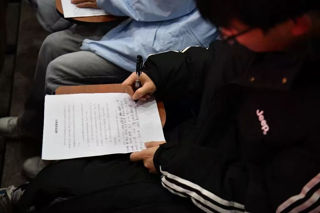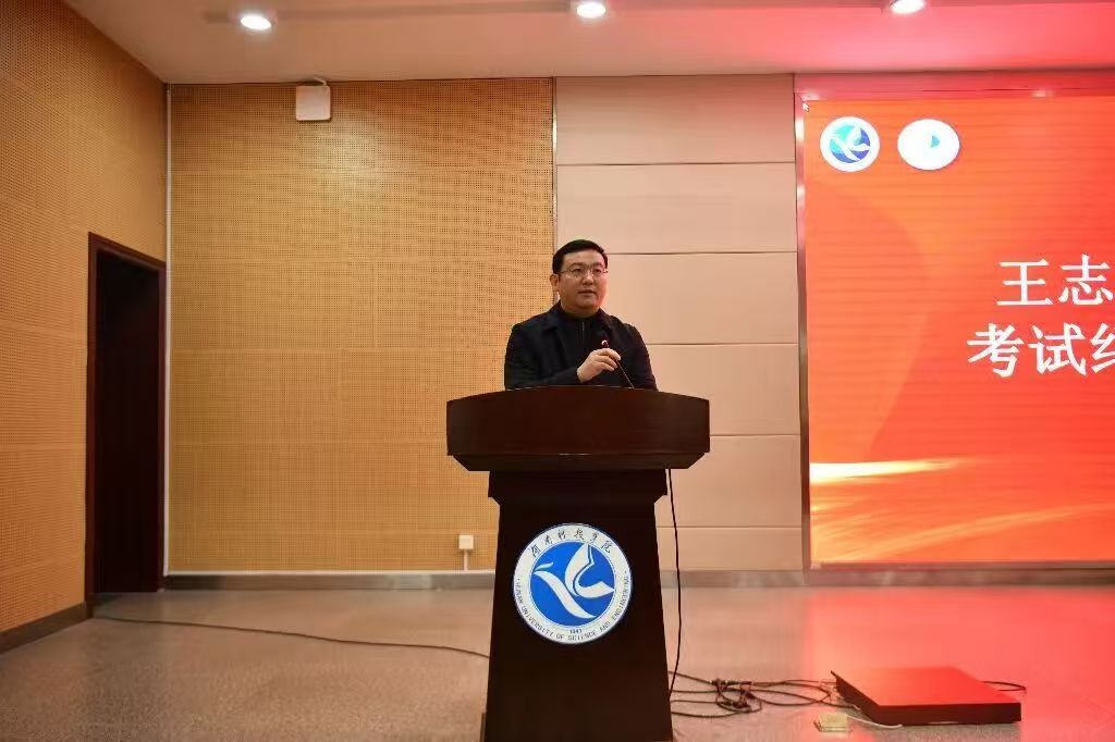 紧接着,诚信考试动员环节正式开始。党总支副书记王志堂重点强调考试纪律,呼吁全体同学恪守诚信、端正考风,认真备考、自觉抵制作弊行为,并同时对近期校园安全注意事项作出提醒。在学生代表奥志琪的带领下,全体同学郑重宣誓,并在《诚信考试承诺书》上签名承诺。