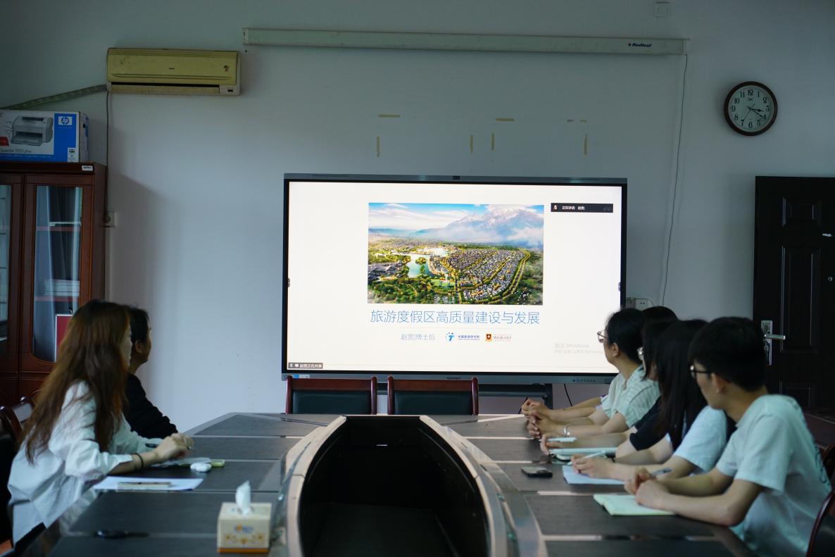 赵宽博士在描述旅游度假区核心特征基础上,系统解析了旅游度假区发展现状与行业规律,提出了旅游度假区发展的三个阶段,并深入剖析当前旅游度假区发展存在的突出问题,最后,针对发展瓶颈,提出旅游度假区高质量开发需树立"五大意识"——体量把控意识、核心产品意识、度假氛围意识、持续运营意识及品质管理意识。现场师生围绕旅游度假区去地产化及度假区高质量发展人才需求等问题进行了深入交流。