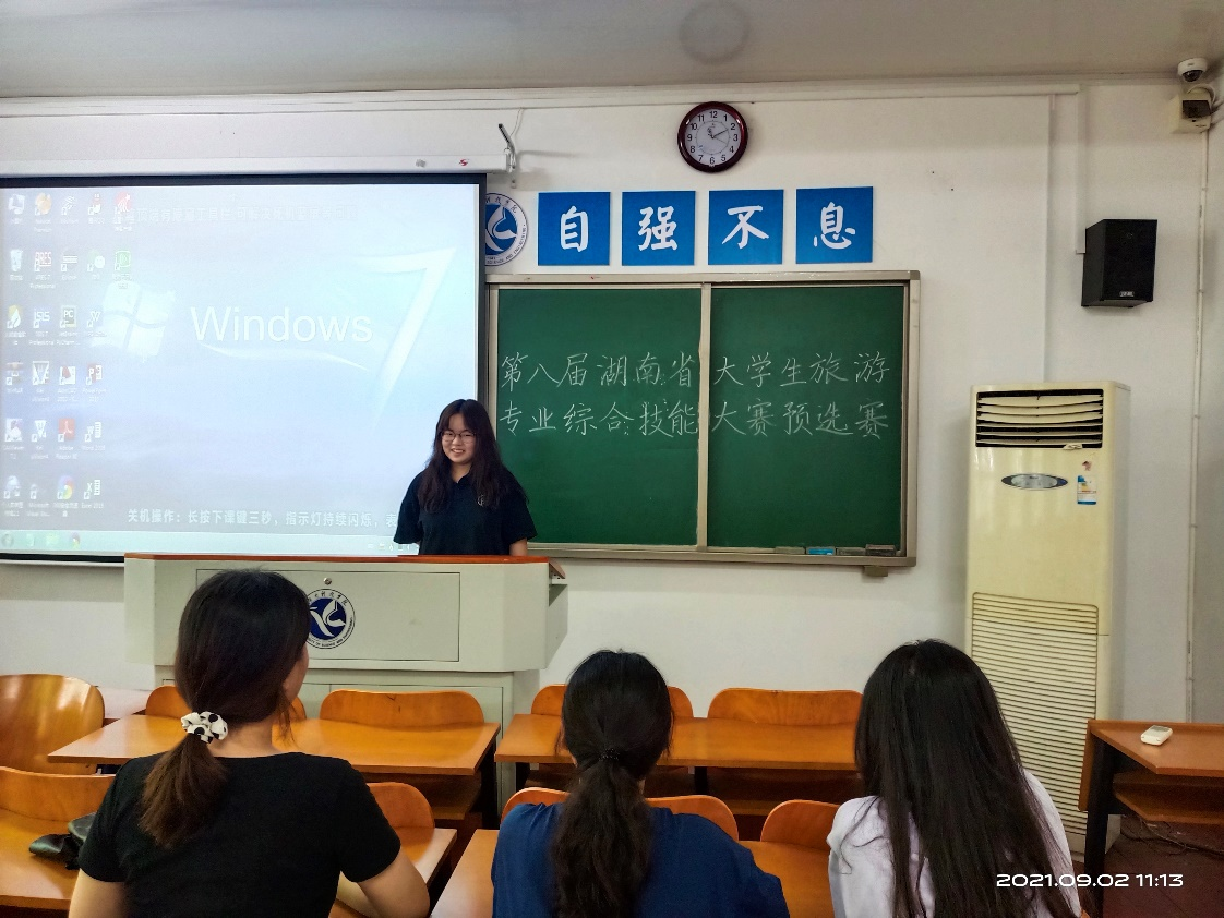 本网讯 7月5日,我校2021年第八届湖南省大学生旅游专业综合技能大赛校级预选赛在荟英楼303成功举办,文化产业管理专业系主任刘进老师、张施冲老师、航空服务艺术与管理系蔡保忠博士、王跃老师、旅游管理系吴翠燕老师和吴宇辉老师等担任评委,同学们热情参与,各施所长。