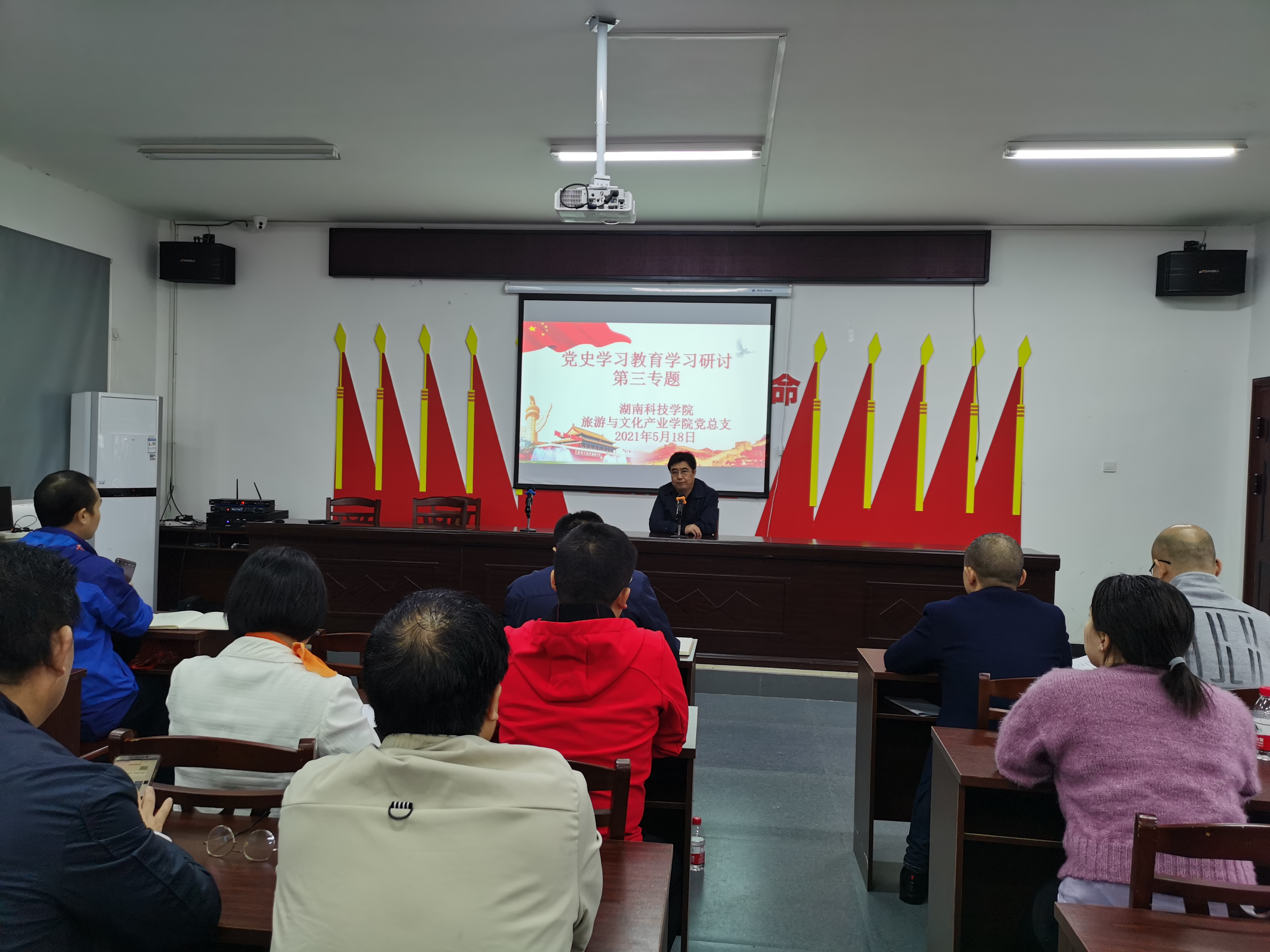 最后,杨再喜组织学院师生党员、群众代表在永连村党员活动中心观看党性教育片,教工党员蔡保忠、学生党员黄英先后发言。杨再喜表示,通过此次现场学习,深感当年战争之艰苦、英烈之豪情,勉励广大师生党员坚定革命信念,弘扬不朽精神,走好新时代长征路。