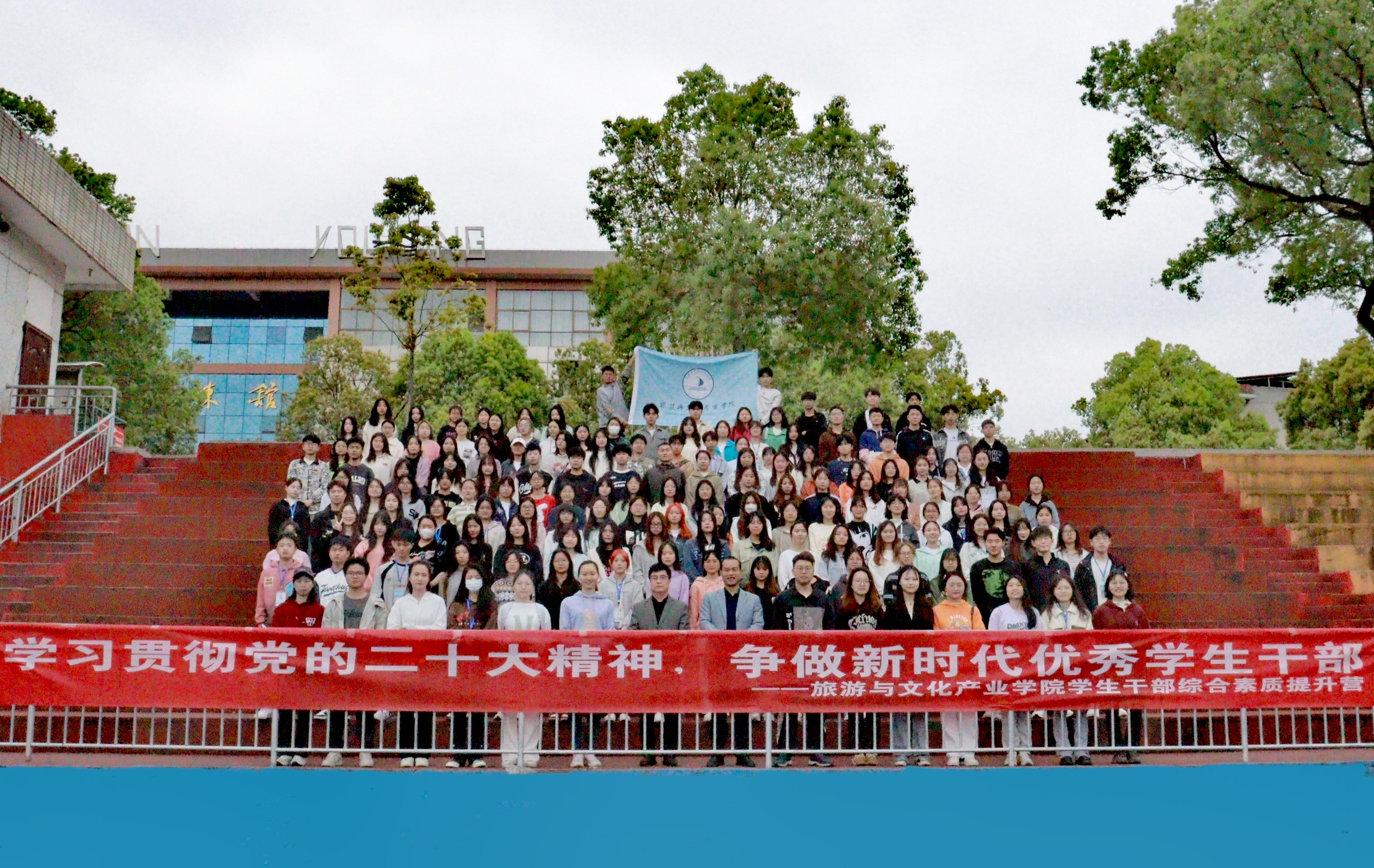 本网讯(通讯员 陈梦婷 郭佳豪)为加强学生干部队伍建设,提升学生干部综合素质水平,增强学生干部的向心力和凝聚力,4月9日上午,旅游与文化产业学院在田径场举办“学习贯彻党的二十大精神,争做新时代优秀学生干部”学生干部综合素质提升营开营仪式暨素质拓展活动。学院党总支书记杨再喜讲话,党总支副书记潘清远、辅导员曾旎和李满出席,学院全体学生干部参加。