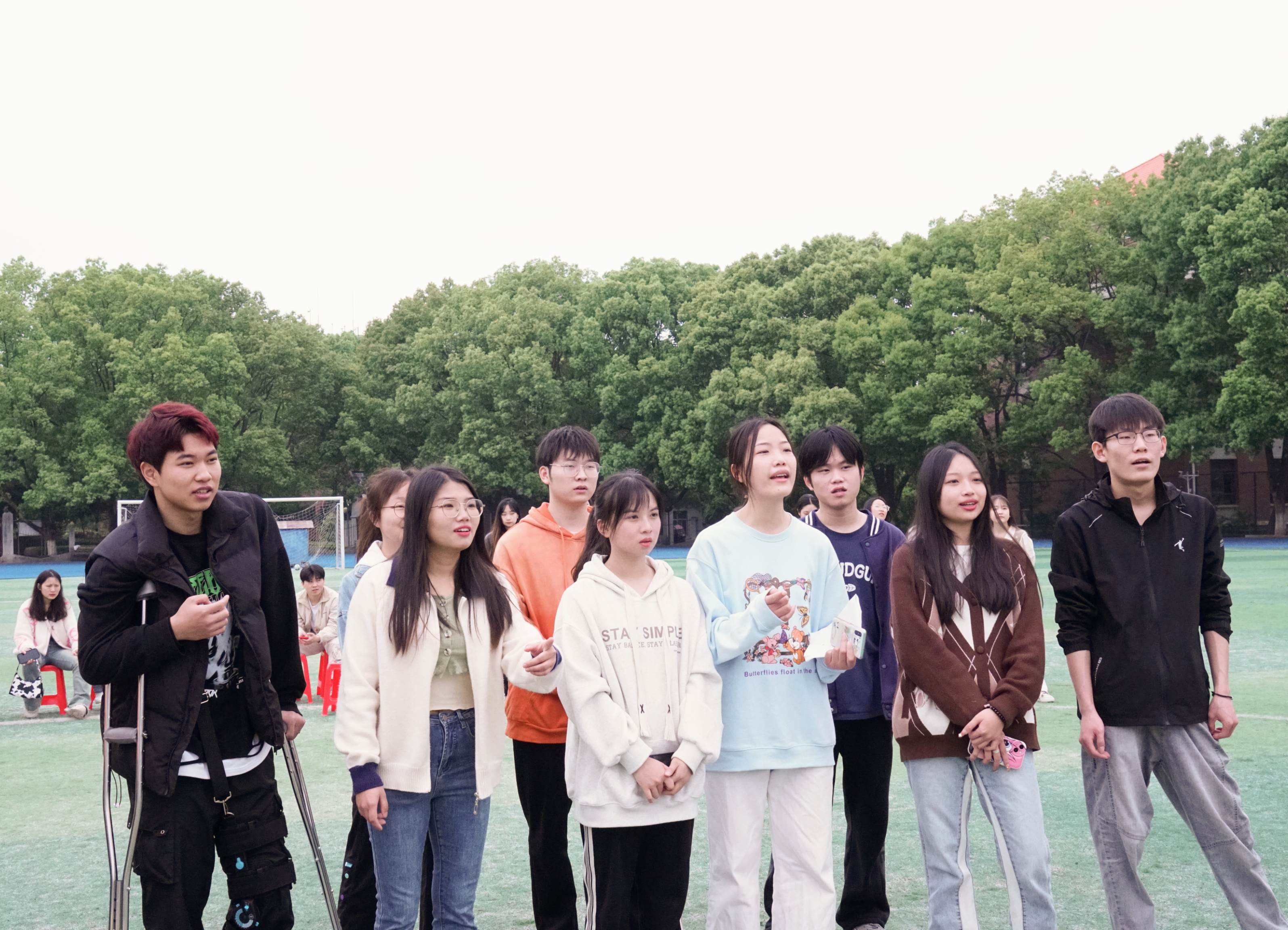 活动现场大家热情洋溢,展现了学生干部的朝气与活力,也呈现出了大家团结一心、勇争一流的良好精神风貌。班长王浩同学前段时间腿部受伤,本可以请假,但他仍然拄着双拐来到现场观看或参加可以参加的项目,师生纷纷为他的坚强和团队精神点赞。