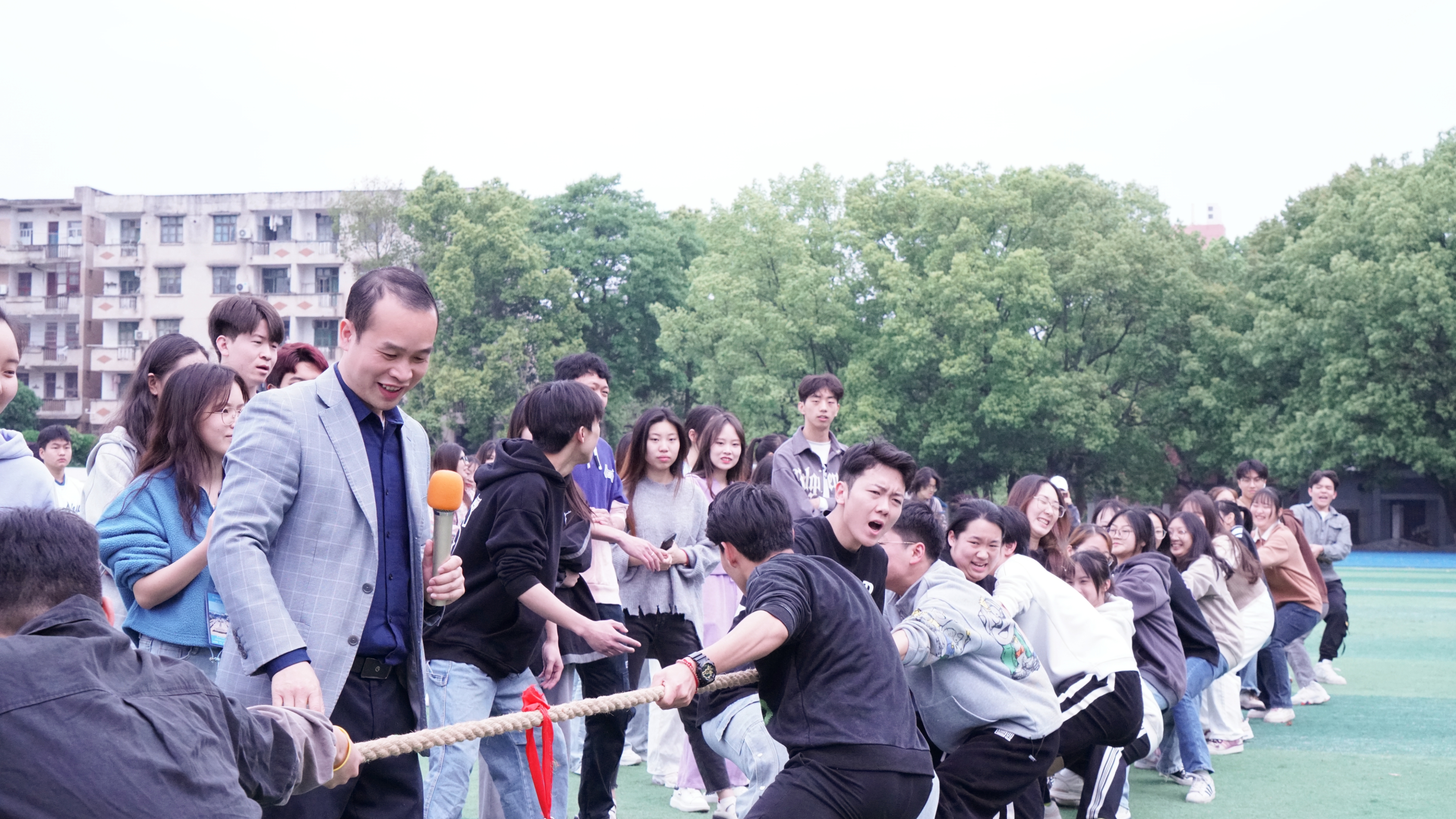 本次素质拓展活动共有“有令必行”、“众志成城”、“齐头并进”、“心有灵犀”、“万众一心”五个项目。“有令必行”率先拉开帷幕,考验着大家的执行力;“心有灵犀”考验了团队之间的默契程度;“众志成城”告诉大家团队胜利才是真正的胜利;“齐头并进”需要参赛者充分沟通才能高效行动;最让人激动的是“万众一心”,双方拔河的同学卯足干劲,旁边喊加油的同学声嘶力竭,将氛围推向了高潮。