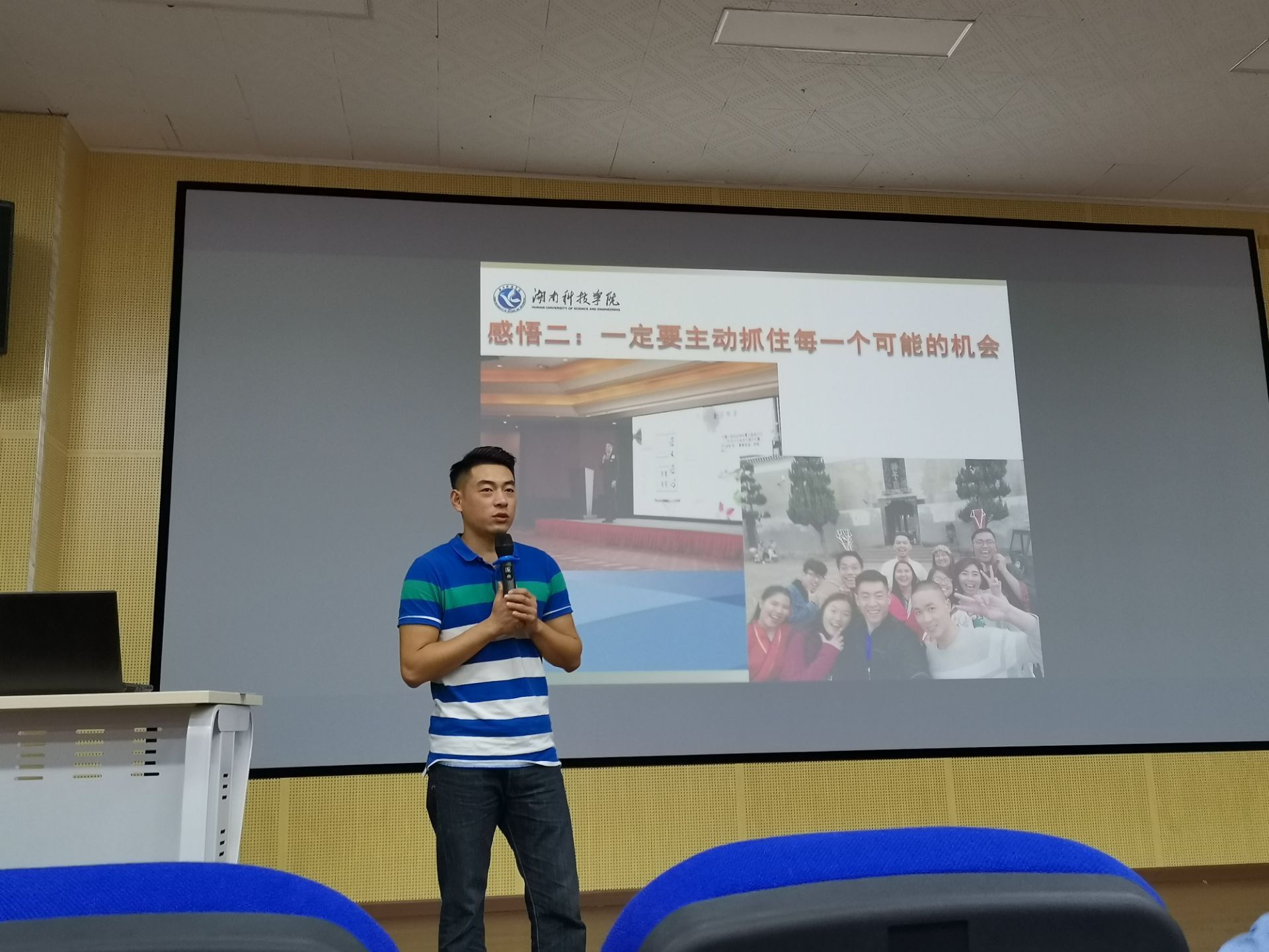 本网讯(通讯员 兰桂红)为促使新生尽早确立目标,有效利用大学时间,我院于10月10日晚在博雅楼西三举行了“我的大学四年与四年后的未来”入学教育讲座。讲座由我院党总支副书记潘清远主持,14级校友徐明主讲,19级全体新生参加。