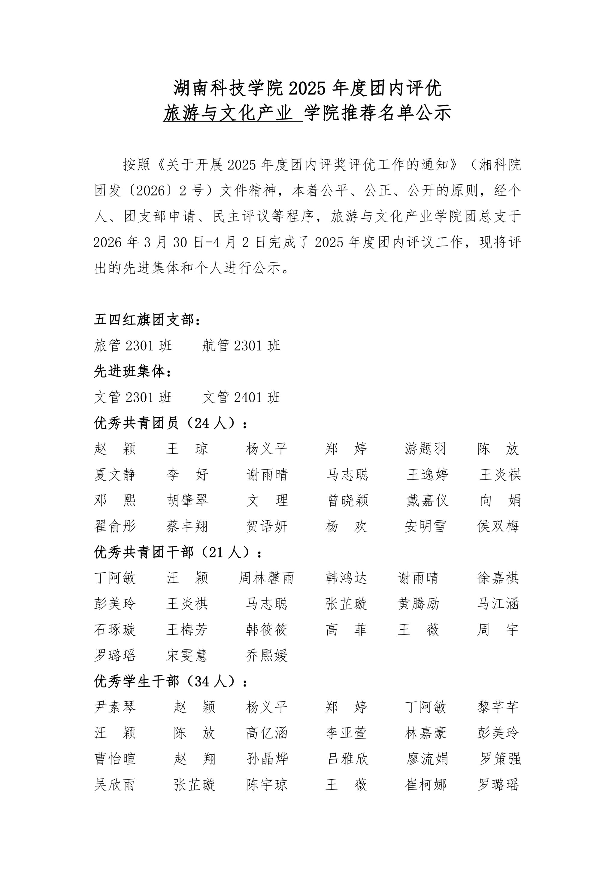 Beat365唯一官方网站2025年度团内评优旅游与文化产业学院推荐名单公示