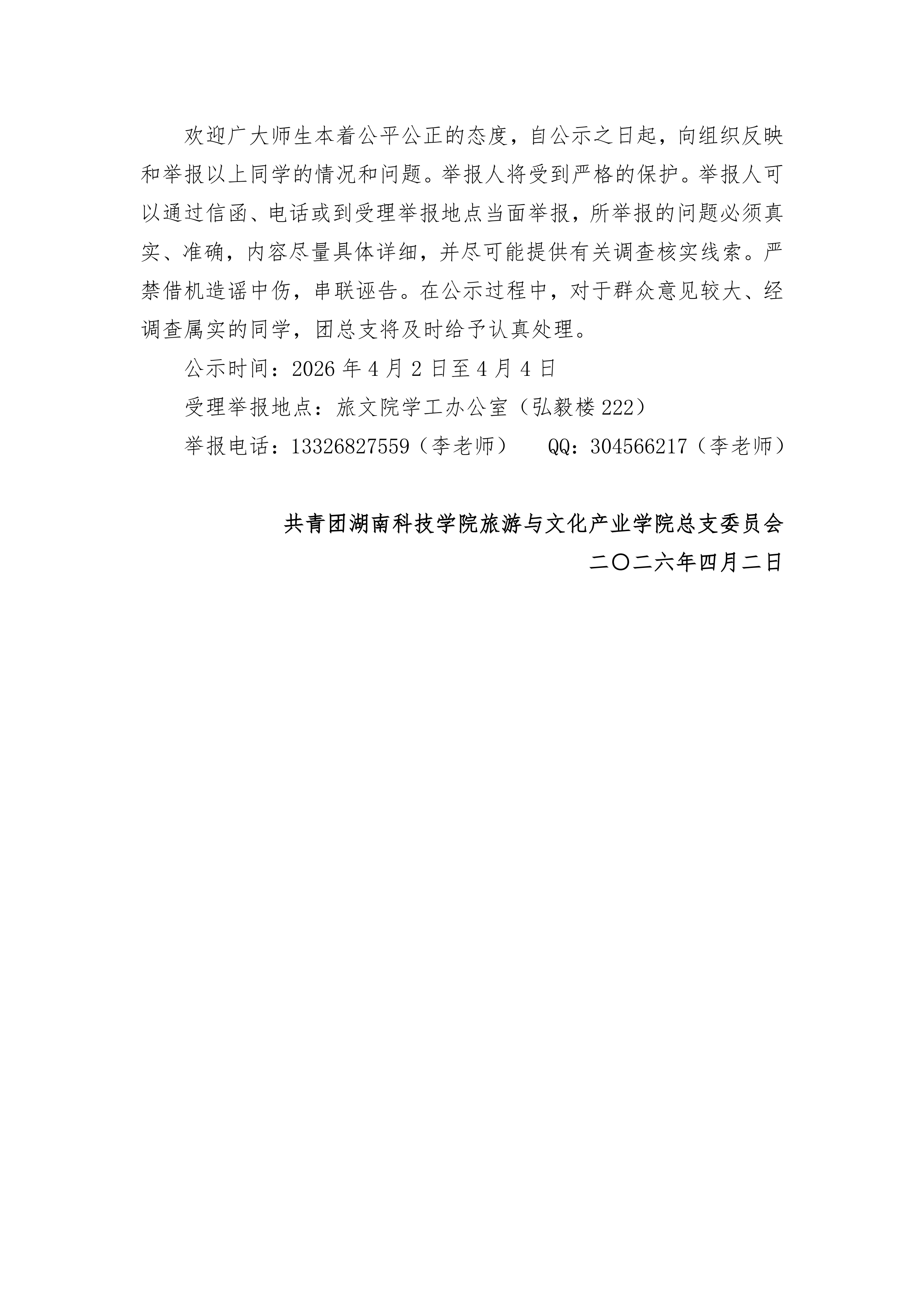 关于对旅游与文化产业学院2026届Beat365唯一官方网站优秀毕业生拟推荐名单的公示