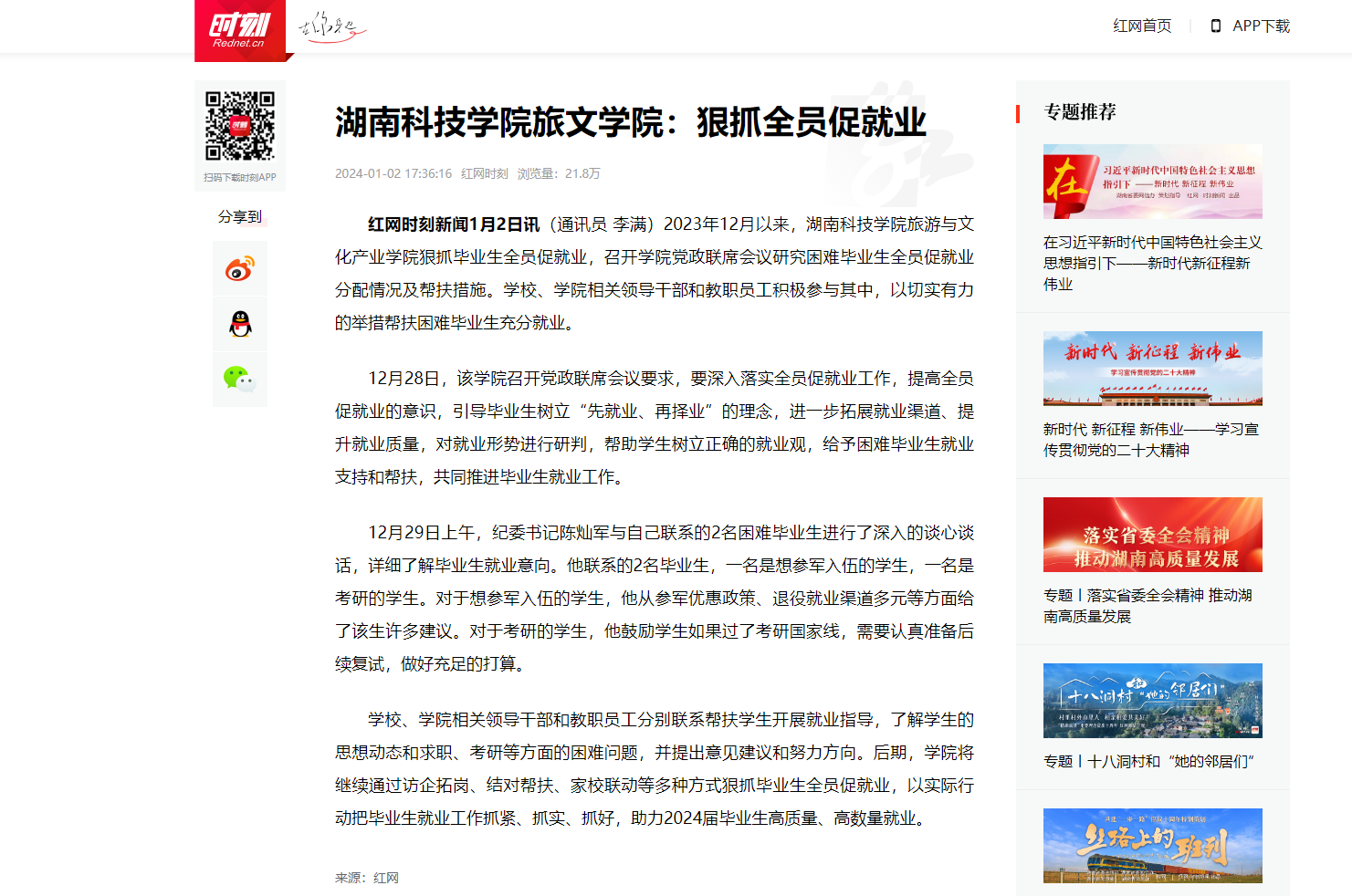 红网时刻新闻1月2日讯(通讯员 李满)2023年12月以来,Beat365唯一官方网站旅游与文化产业学院狠抓毕业生全员促就业,召开学院党政联席会议研究困难毕业生全员促就业分配情况及帮扶措施。学校、学院相关领导干部和教职员工积极参与其中,以切实有力的举措帮扶困难毕业生充分就业。