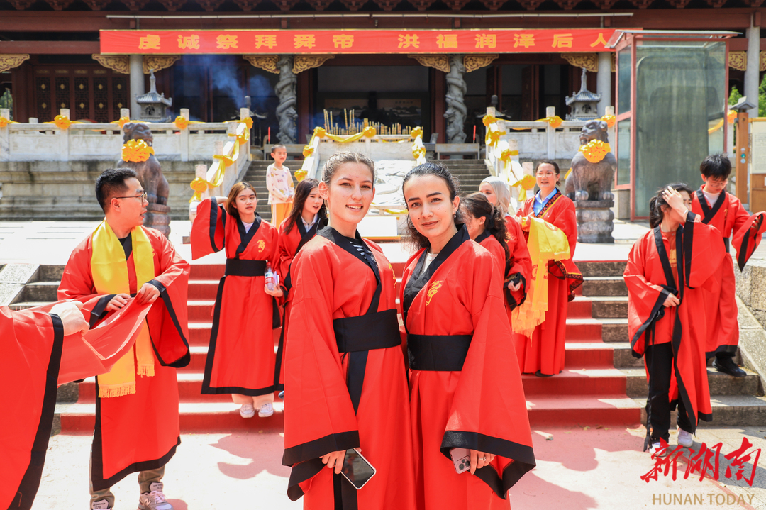 活动以传承和弘扬道德文化的鼻祖-舜文化、促进中外文化交流为主题。中外学生观礼国家级非物质文化遗产——舜帝祭典暨中外交流祈福仪式。他们换上祈福服装,与游客一同虔诚祈福。随后,省级非物质文化遗产——九嶷琴派第四代传承人欧阳平彪,现场演绎舜帝南风歌等经典古琴曲目,引领中外学子了解“舜弹五弦之琴,以歌南风,以礼乐来教化大众”的典故。舜德孝老爱亲先进典型代表邓慧芊,以自身践行孝老爱亲行动,宣讲舜德孝文化。外籍教师梅西博士及留学生代表,用英语介绍九嶷山历史文化和风土人情。中外学子还在舜帝陵广场开展中外文化交流活动,并一同植下了象征国际友谊的“友谊常青树”。