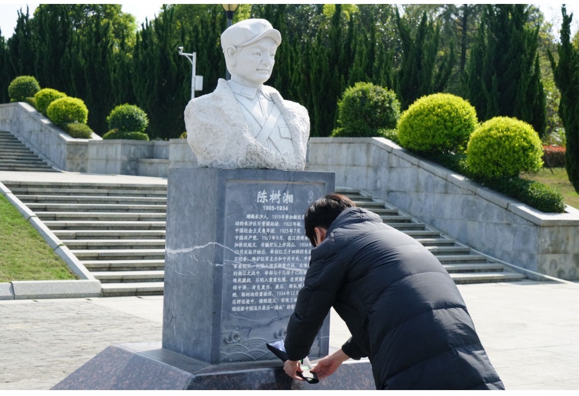 巍巍青山埋忠骨,朵朵“白”花祭英魂,在烈士纪念园,全体志愿者依次为陈树湘、何宝珍等烈士献上花束,并鞠躬默哀,表达对革命先烈的深切缅怀和崇高敬意。
