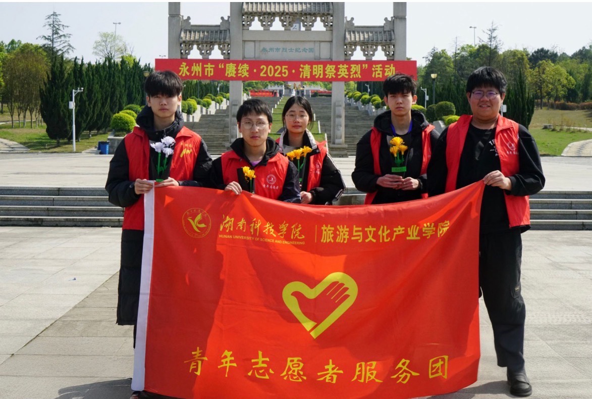 本网讯(通讯员 蒋一睿 李亚萱)4月1日,旅游与文化产业学院青年志愿服务团赴永州市烈士纪念园开展“清明祭英烈•文旅传薪火”活动。