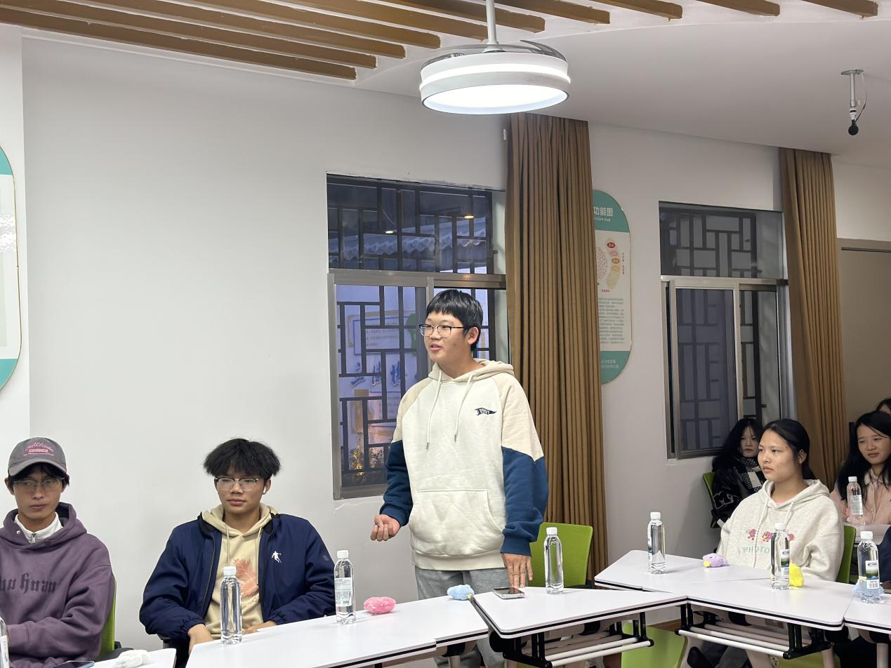 潘媛用折手指小游戏开启分享,借用重点讲述了什么是精神内耗、内耗产生的原因以及如何冲破内耗困境;赵沂凭借对热门脱口秀选手付航的解析,创新性解构了“passion”之于我们的意义与可贵,生动地分享了当代青年大学生应该如何保持“passion”。分享讨论交流环节,参会同学积极诉说困难与贡献缓解小妙招,通过对话疗愈的方式,引导同学们认清自我、接纳自我、缓解自我,增强心理韧性,抢答环节更是将气氛推向高潮。最后,特邀老师赵江南、曹惠如从教育心理学、管理学角度就同学们提出的困惑给出建议,为同学们拨开迷雾。