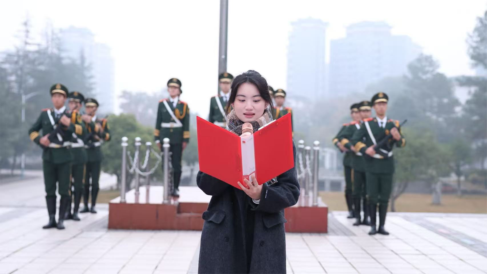 本网讯(通讯员 郭辉宇) 12月8日清晨,理学院在学校文化广场举行升国旗仪式。理学院党总支副书记欧阳素勤、全体辅导员及大一、大二全体学生参加。升旗仪式由学工办主任康平老师主持。