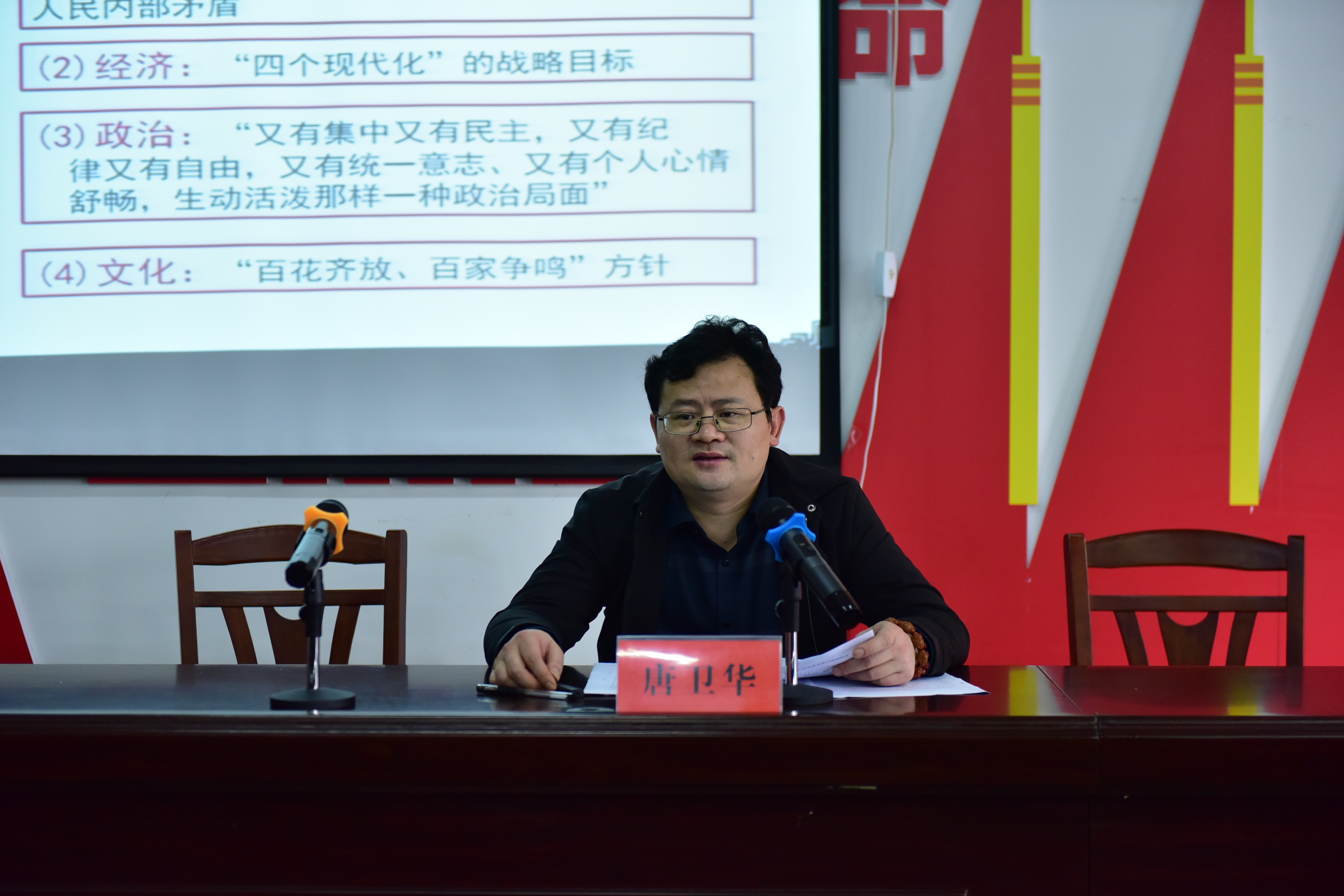在党总支理论学习中心组(扩大)集中学习暨“学史增信”专题党课上,唐卫华以《信仰的力量——湘籍无产阶级革命家的理想信念》为题,从“湘籍无产阶级革命家理想信念的形成条件、主要内容、现实启示”三个方面,对“信仰的力量”进行了深刻阐释。