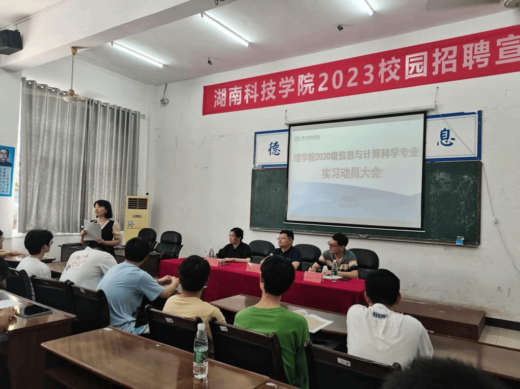 本网讯(李静杜俊杰)2023年6月27日下午,理学院在明理楼101会议室成功召开2023年信计专业实习、就业动员大会。学院党总支书记唐卫华、学院党总支副书记欧阳素勤、学院副院长吴清华、辅导员出席了动员大会,全体实习学生参加。会议由计算科学系系主任李静老师主持。