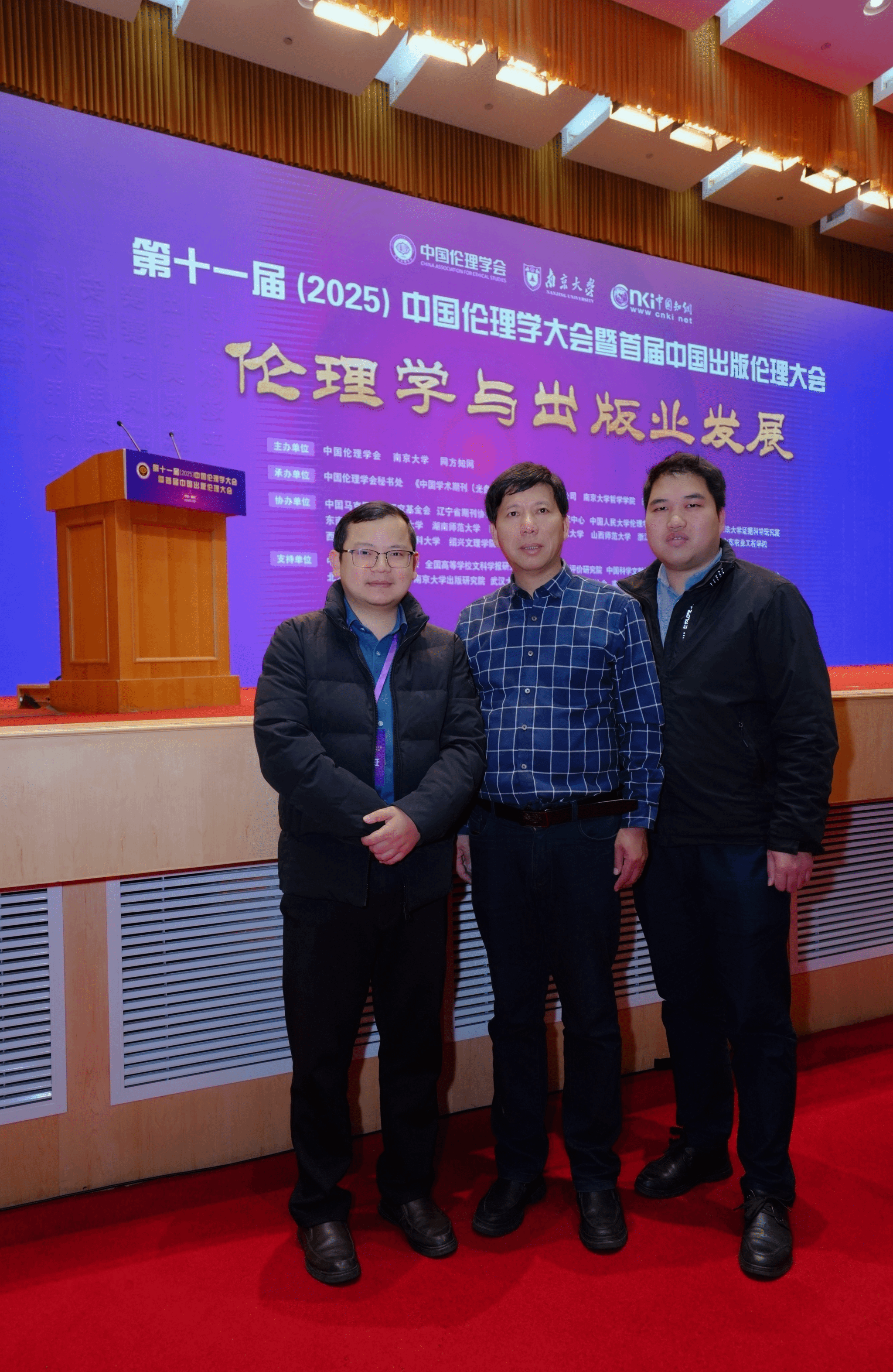本网讯(通讯员 陈猛)2025年12月12日至14日,第十一届中国伦理学大会暨首届中国出版伦理大会在南京举行。本次大会由中国伦理学会、南京大学、同方知网联合主办,来自全国高校、科研院所、出版行业等相关领域的千余位学者齐聚一堂,围绕“伦理学的理论发展及出版伦理”这一主题,展开了广泛而深入的学术交流与探讨。我院潘剑锋教授、符小勇老师、陈猛老师等三位教师应邀出席了此次学术盛会。