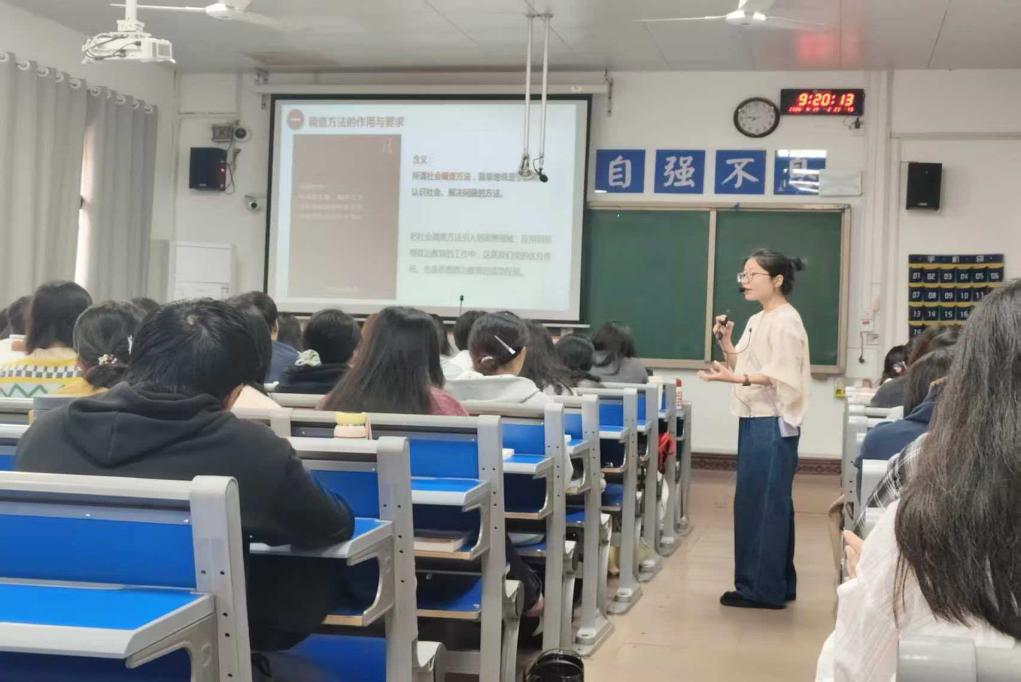 活动中,思政系教师齐聚课堂,共同聆听王忠君老师主讲的《思想政治教育方法论》。王忠君运用丰富多样的教学方法,围绕思想政治教育方法体系中社会调查方法相关内容进行了生动的讲解,展现了良好的教学风采和课堂驾驭能力。