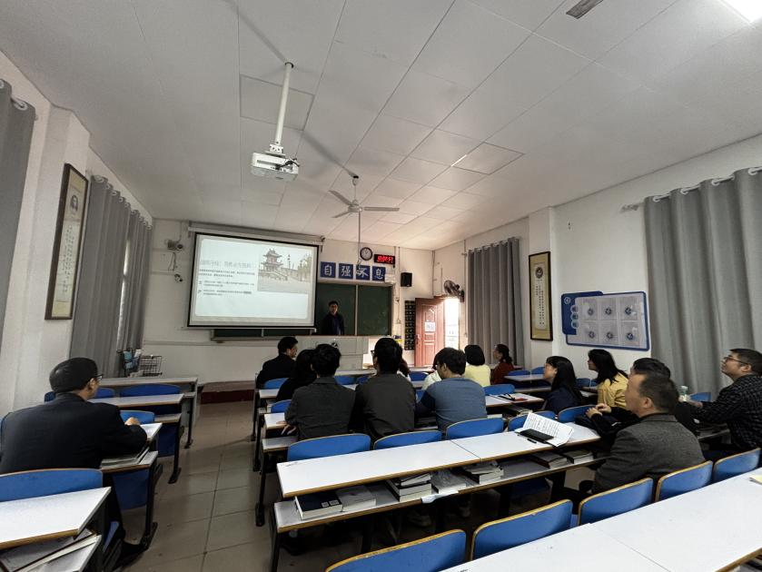 本网讯(通讯员 羊江瑶)为深入贯彻落实学校关于将师德师风建设融入党建工作全过程的要求,推动形成“党建强师、师德铸魂”的育人格局,2025年10月29日,马克思主义学院教工第一党支部书记吴俊平在鹤鸣楼406教室,以《弘扬教育家精神:新时代教师使命》为题,为支部党员教师讲授了专题党课。
