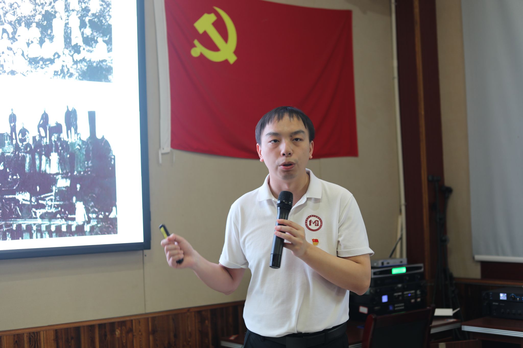 4月19日,在醴陵先农坛,马克思主义学院教工第一党支部书记吴俊平副教授以《从先农坛读懂党的调查研究和政绩观》为题主讲微党课,吴俊平结合毛泽东1927年在对湘潭、湘乡、衡山、醴陵、长沙5县农民运动进行为期32天的实地考察后,撰写了《湖南农民运动考察报告》这一历史背景出发,深入浅出地解释了“没有调查就没有发言权”,他特别指出思政课教师,在科研和教学中要实事求是,力戒形式主义,认真履行教书育人的岗位职责。微党课后全体党员在教工第二党支部书记陈小燕的带领下重温了入党誓词。