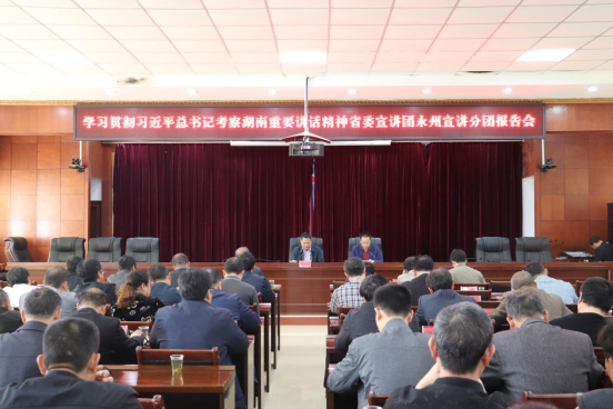 在宣讲报告会上,杨军重点围绕习近平总书记为湖南发展明确的战略定位、战略目标、战略任务,大力发展先进制造业和实体经济,推进脱贫攻坚和乡村振兴,生态文明建设,调查研究、问计于民,基层建设,红色文化等12个方面,结合当地实际情况,对习近平总书记考察湖南重要讲话精神的重大意义、丰富内涵、精神实质和实践要求,进行了全面深入地解读。