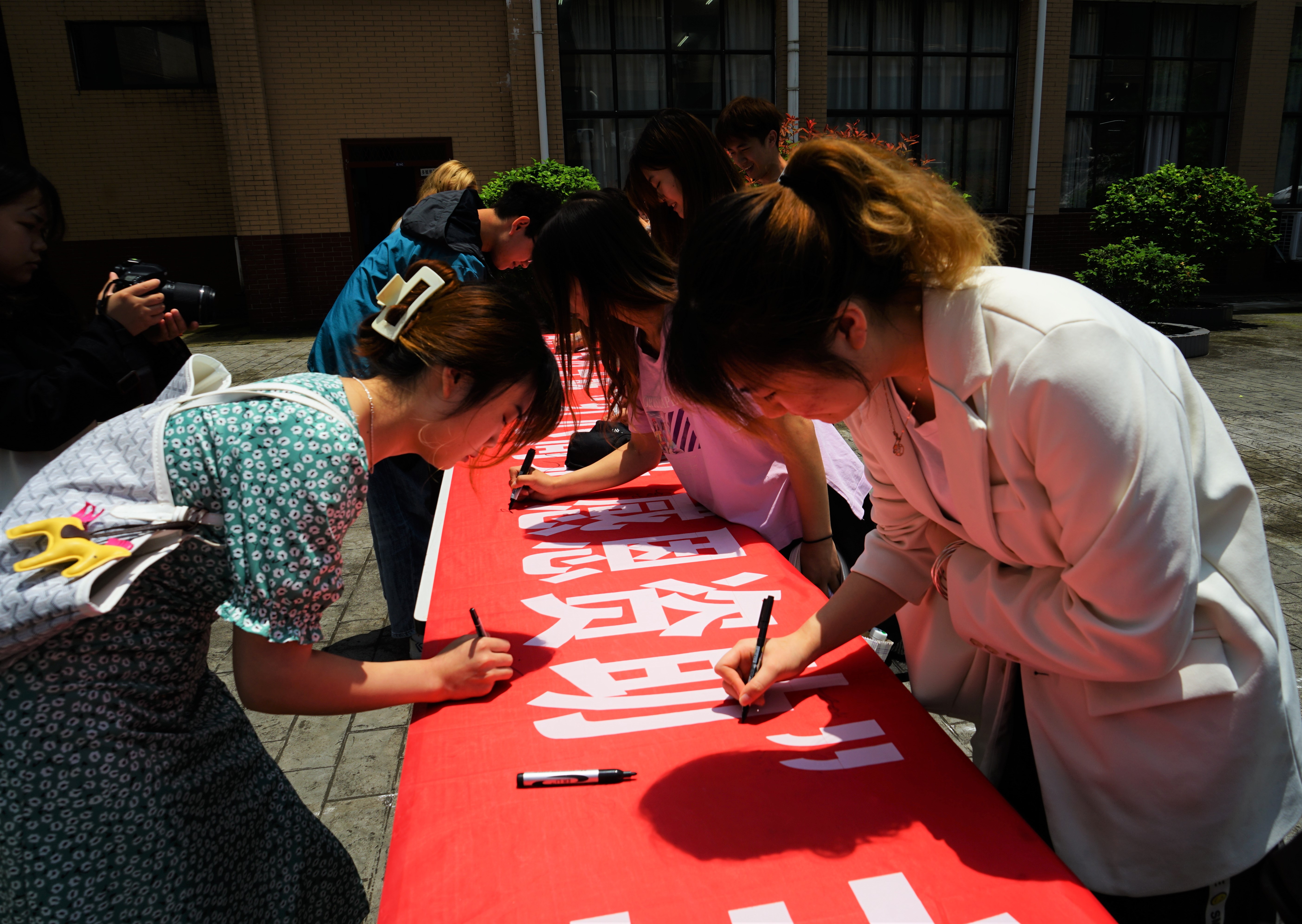 紧接着同学们纷纷加入主题教育签名活动,此次活动正式拉开了以“红心向党,感恩资助”为主题的资助政策宣传月系列活动。