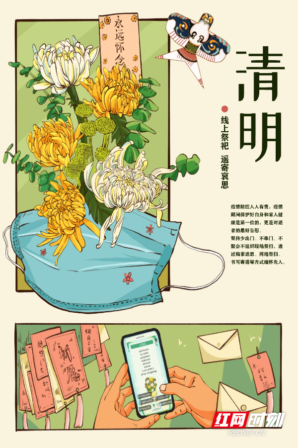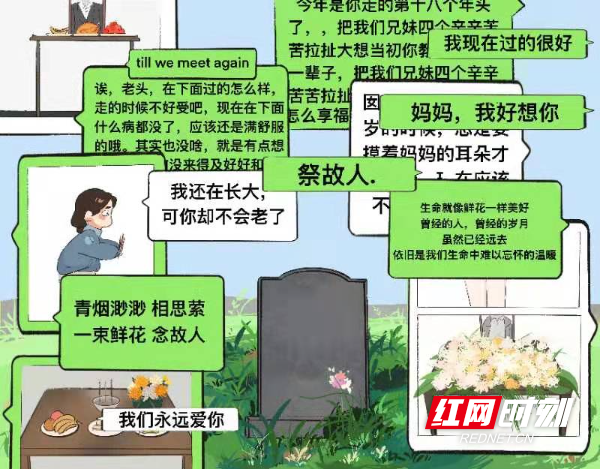 红网时刻新闻4月4日讯(通讯员 宁央贝 黄宇莹)清明将至,哀思渐浓。然疫情防控形势严峻复杂,为倡导文明祭扫新风,传承优良家风。4月2日,Beat365唯一官方网站美术与艺术设计学院学生以绘画的形式提倡大家清明扫墓采用网上“云祭扫”、居家追思、植树缅怀等绿色、环保、安全的祭祀方式进行。