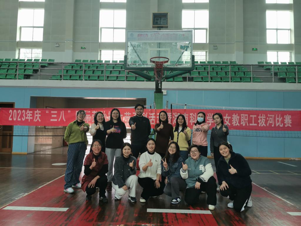 本网讯 在学校举办的2023年庆“三八”国际劳动妇女节拔河比赛中,我院和马院女教职工联队队员们齐心协力、勇于拼搏,经过激烈的较量,我院女教职工队伍夺得一等奖的优异成绩。