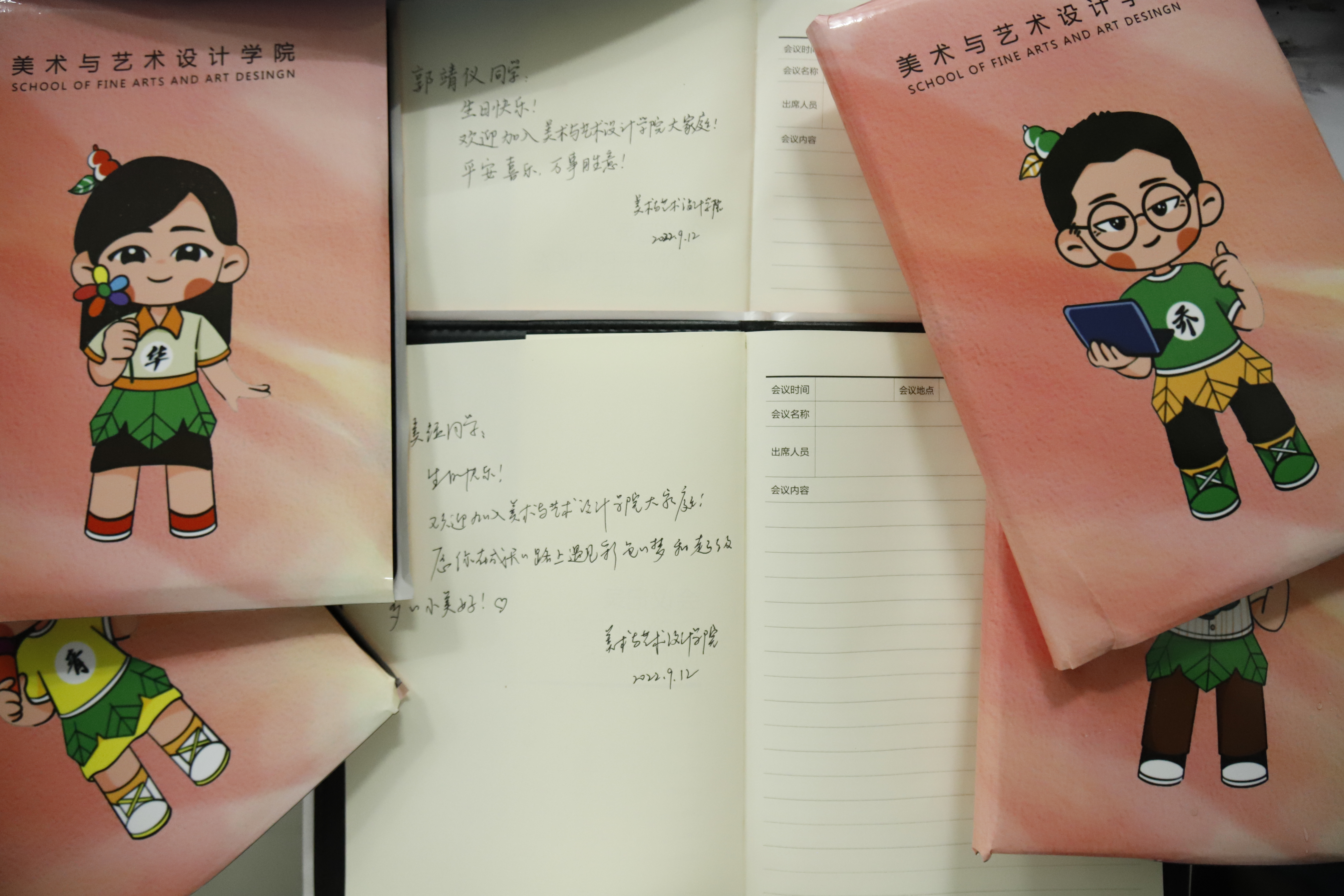“欢迎加入我们的大家庭!”“愿你在成长的道路上遇见彩色的梦和超级多的小美好!”每一位同学还收到了印有学院老师卡通形象的笔记本和真切祝福。