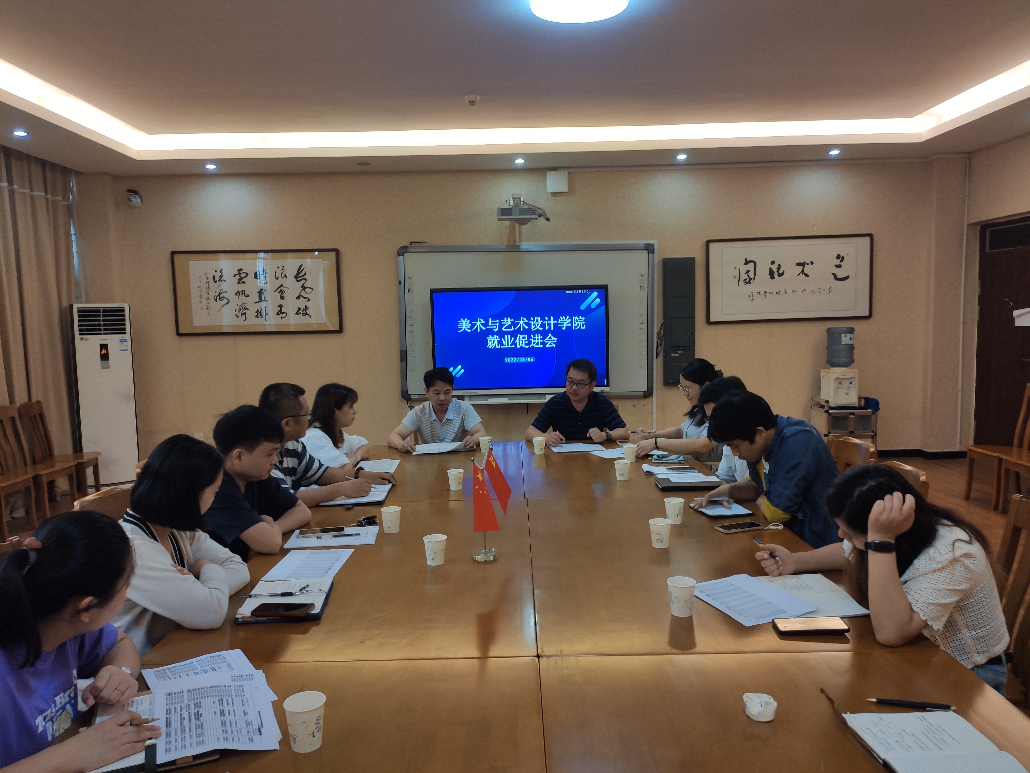 本网讯(通讯员 卿可青)2022年6月6日上午,美术与艺术设计学院在美术楼南202召开就业促进会议,副校长李常健、美院领导张建利、刘华、2018级全体班主任和辅导员参加会议,会议由张建利主持。