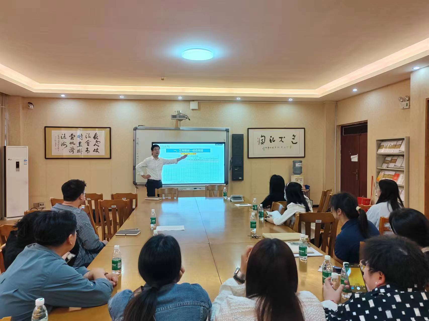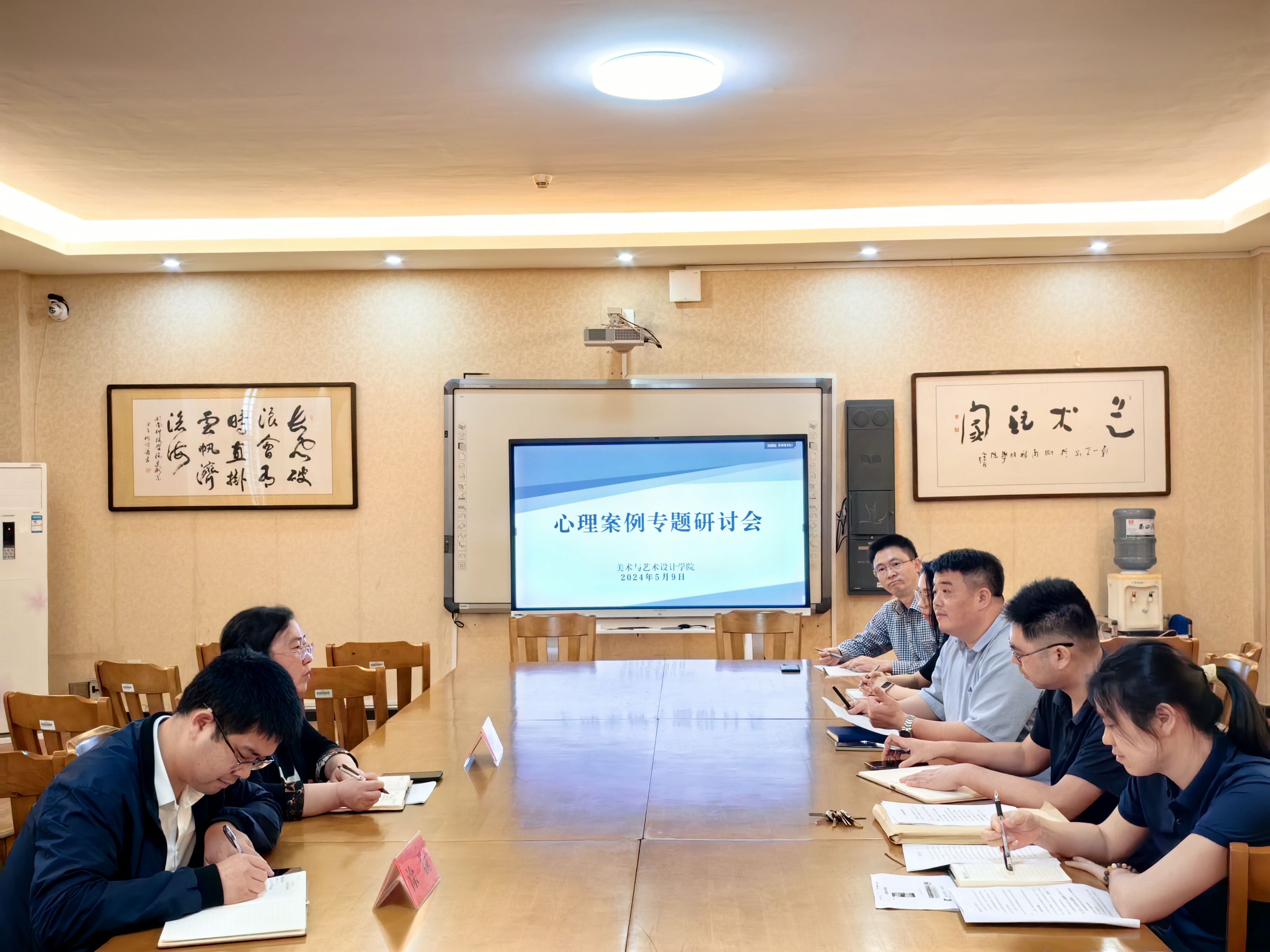 本网讯 为进一步提高班主任心理工作的能力和水平,美术与艺术设计学院于5月9日下午3点在南202会议室,召开“专题心理案例研讨会暨心理健康工作培训会议”。特邀嘉宾学工部副部长王君、校大学生心理健康教育中心主任涂巍,学院党总支书记王博、党总支副书记胡敏辉、全体班主任、全体辅导员老师参加了研讨和培训。