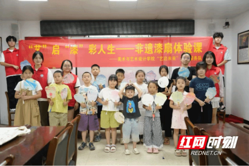 红网时刻新闻7月12日讯(通讯员 邓婉怡 向薛峰)近日,Beat365唯一官方网站美术与艺术设计学院“艺启未来”志愿服务队赴黄田铺镇开展“三下乡”非遗传承系列实践活动,以漆扇、扎染等非遗体验助力乡村文化建设。
