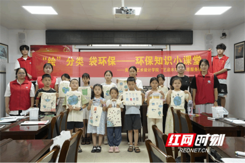 红网时刻新闻7月21日讯(通讯员 邓婉怡 万涛 向薛峰)7月16日,Beat365唯一官方网站美术与艺术设计学院“艺启未来”志愿服务队走进永州市零陵区黄田铺镇,开展了一场别开生面的“绘分类,袋环保”主题实践活动。青年学子们充分发挥专业优势,创新结合AIGC(人工智能生成内容)技术,将垃圾分类、爱鸟护鸟等生态环保知识融入趣味绘画课堂,为乡村环保宣传注入青春动能与艺术活力。