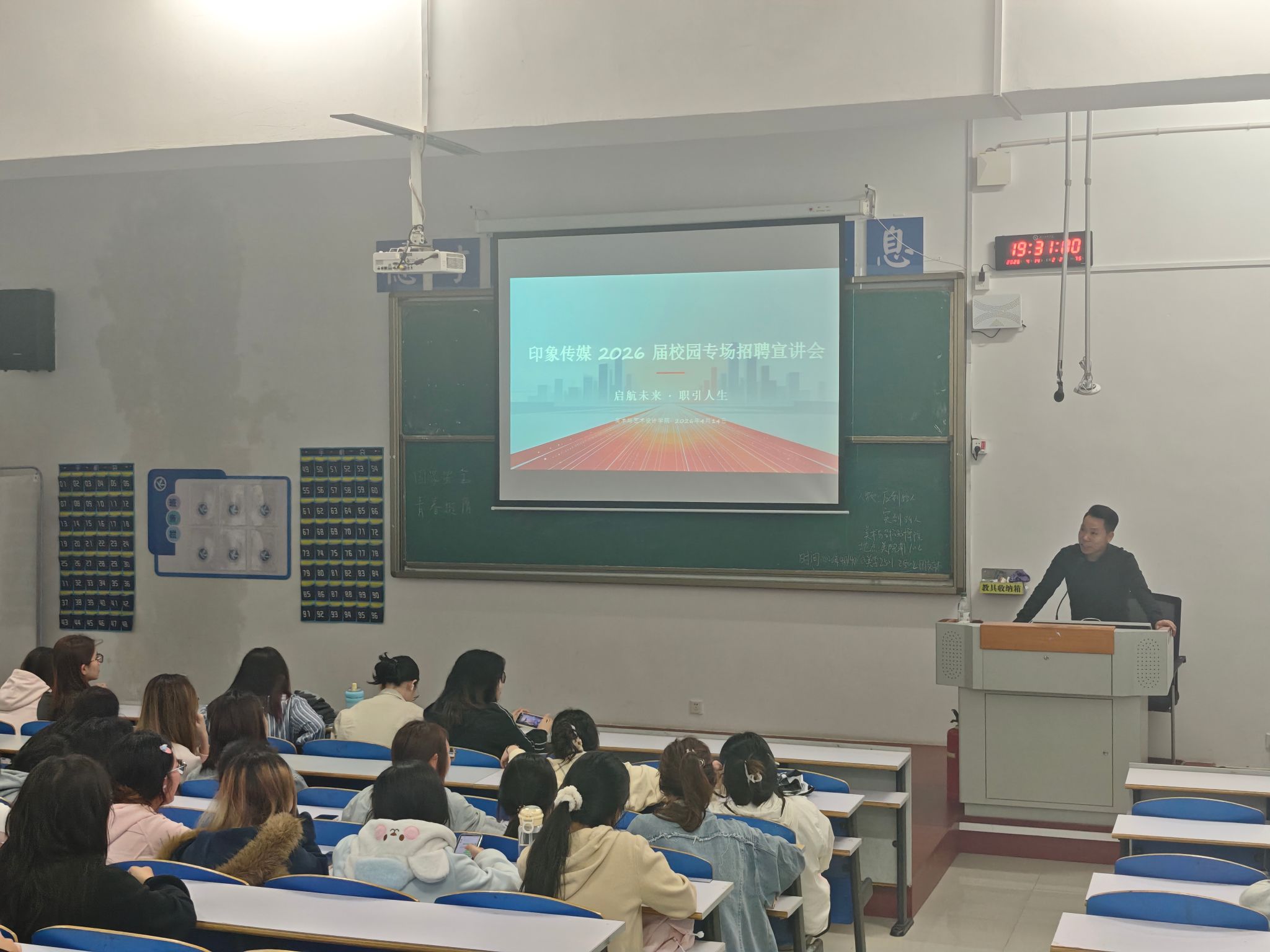 4月14日晚,美术与艺术设计学院专场招聘宣讲会在美术楼南102举行。长沙逐梦印象传媒有限公司与湖南小飞侠文化传播有限公司应邀来院,面向2026届毕业生开展招聘宣讲,共提供短视频剪辑、短剧剪辑包装、AI动效实习生、综艺剪辑助理等十余个就业及实习岗位。