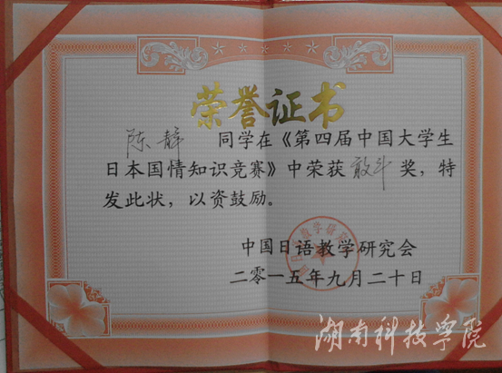 据悉,中国大学生日本国情知识竞赛是一项全国性的大赛,要求参赛选手对日本的历史、地理、文化、社会等基本国情知识进行全面了解。本次竞赛代表队由外国语学院朱婷老师担任指导。面对准备时间短,竞争对手实力强等困难,经过笔试、必答题、抢答题、对抗赛、加试赛等多个环节,最终在众多参赛选手中脱颖而出,斩获佳绩。