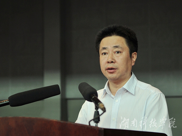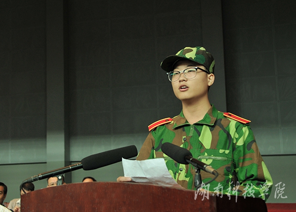 “初秋九月,西山脚下,秋风夹着凉爽,农民丰收金黄的稻穗;风华正茂,灵犀桥上,青涩带着成熟,你们享受六月的战果;海纳江河,潇水之滨,感叹携着惊喜,学校喜迎亲爱的你们。”校长曾宝成面对近4000名新生,满怀深情地发表题为《把握青春,做自强科院人》的讲话。