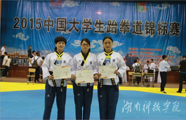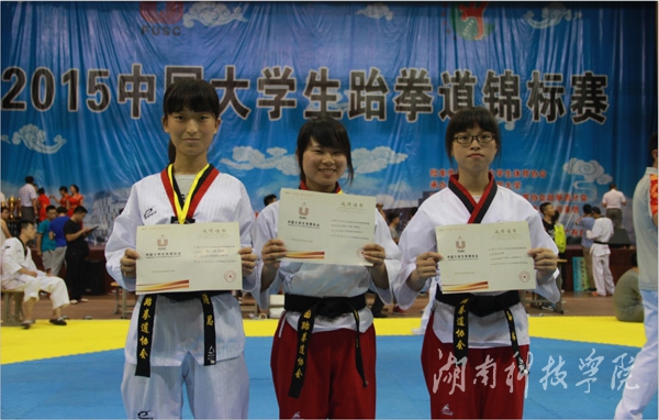 本次比赛来自北京、天津、上海等全国124所高校共1300余名选手角逐竞技、品势两个大项共16个级别的冠军。我校参赛运动员在个人品势和团体品势比赛中获奖。其中,孙琳获女子甲组个人品势第五名;孙琳、潘思和陶瑞雪获女子甲组团体品势第五名并获总分第八名;黄欣、李园、梁水英获女子乙组团体品势第五名并获总分第五名;体育学院盛靖同学获2015年中国大学生跆拳道锦标赛“最佳技术奖”;张修昌老师获“优秀教练员奖”。