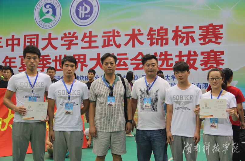 本网讯  7月17日至7月21日,由中国大学生体育协会主办的“2015年中国大学生武术锦标赛暨2017年夏季世界大学生运动会选拔赛”在河南理工大学举行。体育学院学生江珂获女子“龙身蛇形”太极拳铜牌,并被确定为“2017年世界大学生运动会”候选队员,这是我校在全国体育竞赛中奖牌“零”的突破,也是湖南省高校历史上参加全国武术竞赛的第三次夺牌。