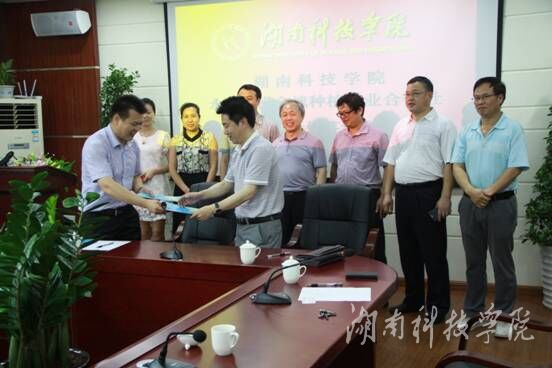 本网讯(通讯员 李珺)近日,学校与永州锦溁金槐种植农民专业合作社产学研合作签约仪式在化学与生物工程学院举行,校长曾宝成、合作社理事长唐良荣出席签约仪式,并分别代表校企双方签约。科技处处长杨金砖、该院院长何福林、党总支书记赵雨云等参加仪式。