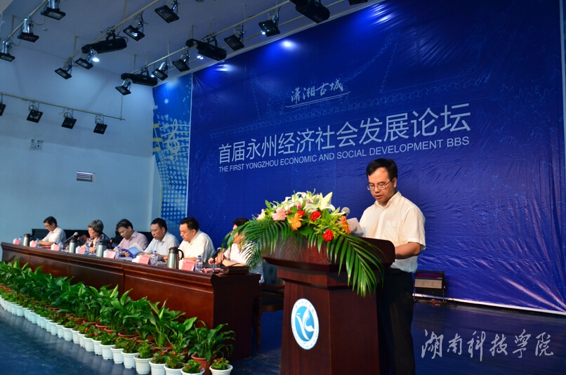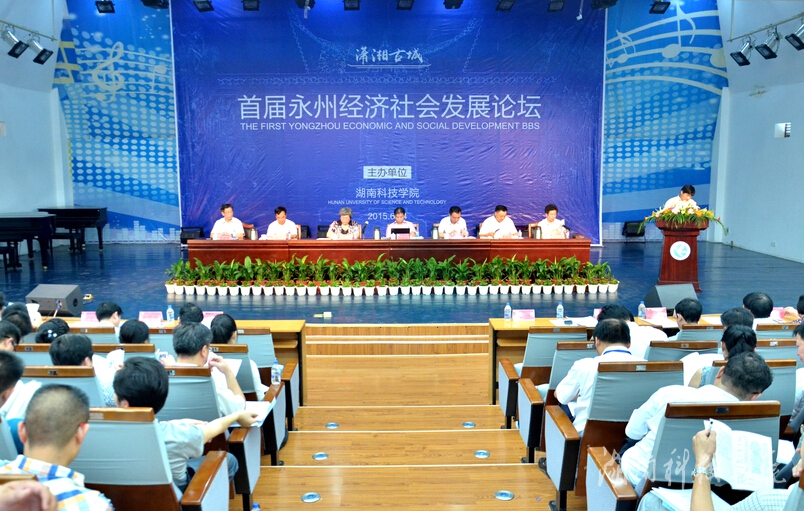 本网讯(记者 熊玲芝 摄影 秦峰 张贵  王煜  )6月24日,由我校主办的首届“永州经济社会发展论坛”在音乐楼演播厅举行。论坛以“引领新常态 建设新永州”为主题,研究永州经济社会发展突破口,探索新常态下永州经济文化发展新模式,力促永州经济与社会实现跨越式发展。