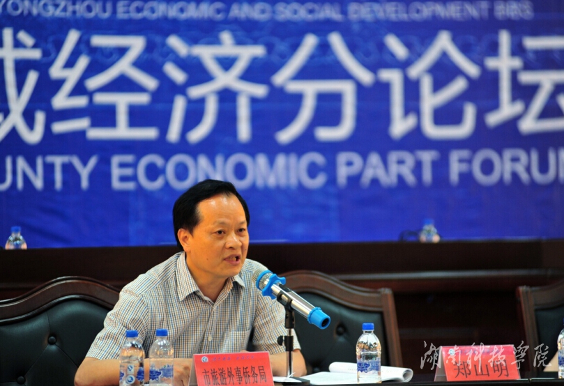本网讯(记者 李瑛 牛泽宇 摄影 秦峰)6月24日下午,永州市首届经济社会发展论坛县域经济分论坛在行政办公楼八楼会议室举行,校领导曾宝成、彭立威、程智开,市委党校、市政协研究室,冷水滩区、零陵区、祁阳县等11个县域领导代表,我校部分教学学院院长、党总支书记及教授、博士等专家学者出席论坛,校长曾宝成主持论坛。