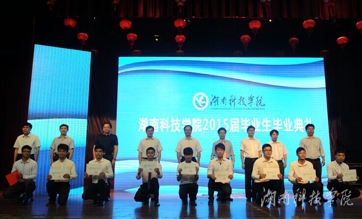 副校长程智开宣读湖南省教育厅《关于表彰湖南省普通高校2015届优秀毕业生的通报》,我校67名毕业生受到表彰。